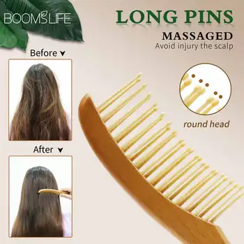 Wooden Hair Brush Wide Tooth Wet Hair Combs Anti-Static Styling Comb for Long Hair Head Acupuncture Point Massage Gift for Women