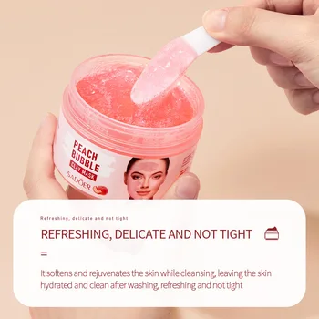 INFORMATION Product name:Peach bubble facial mask Weight:100g Applicable skin:Suitable for various skin types Date of use:See outer packagingMain ingredients:Peach extract, Centella asiatica, Carbomer, etc Benefits:Containing peach, Centella asiatica and other skin care ingre dients, it has delicate texture, takes care of dry skin, makes skin smooth and delicate, suitable for you and creates pink girl…