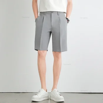 Select options This product has multiple variants. The options may be chosen on the product pageSummer Men’s Suit Shorts Solid Color Loose Drape Business Straight British Casual Knee-length Pants Brand Clothing Black Gray