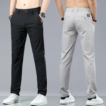 Select options This product has multiple variants. The options may be chosen on the product pageSummer Ice Silk Stretch Casual Pants Men Thin Soft Fashion Business Elastic Korean Slim Male Clothes Trousers Gray Black Green