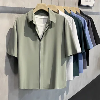 Select options This product has multiple variants. The options may be chosen on the product pageSummer Cool Men Short-sleeved Shirt Anti-wrinkle Solid Color Fashion Office Casual Loose Button Pocket Shirt Male Clothing Top