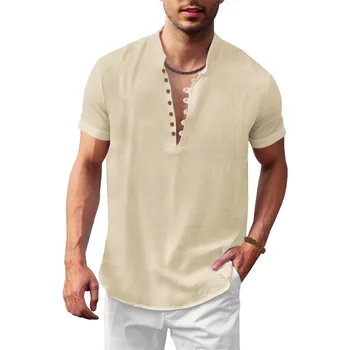 Select options This product has multiple variants. The options may be chosen on the product pageSummer New Men’s Cotton Linen T-shirt Short Sleeve Breathable Lightweight Solid Color Male Fashion Henley Neck Button Top
