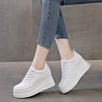 Select options This product has multiple variants. The options may be chosen on the product page2025 Spring Autumn Genuine Leather Shoes Women Flats Elegant Platform Ladies Height Increasing Shoes 8cm Black White YX48350