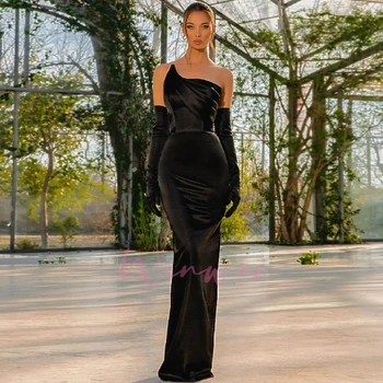 Select options This product has multiple variants. The options may be chosen on the product pageBlack Prom Gown for Women One Shoulder Velet Formal Evening Party Dress Sexy Sheath Backelss Performance robe de mariée