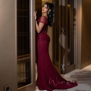 Select options This product has multiple variants. The options may be chosen on the product pageBurgundy Mermaid Evening Formal Dresses Long High Slit Off Shoulder Ruched Customized Jersey Saudi Arabic Prom Gown Outfit