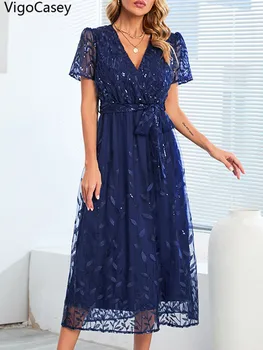 Select options This product has multiple variants. The options may be chosen on the product pageVigoCasey 2025 Female Short Sleeve V Neck Evening Dress Women Summer Solid Long Dress Lady Mesh Patchwork Tight Dresses