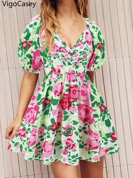 Select options This product has multiple variants. The options may be chosen on the product pageVigoCasey 2025 Female Elegant Flower Print Short Dress Women Sexy Short Sleeve Clud Dress Lady Casual V Neck Summer Dresses