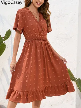 Select options This product has multiple variants. The options may be chosen on the product pageVigoCasey 2025 Female Solid Long Clud Dress Women Sexy Ruffle Short Sleeve Dress Summer Lady Casual V Neck Tight Dresses