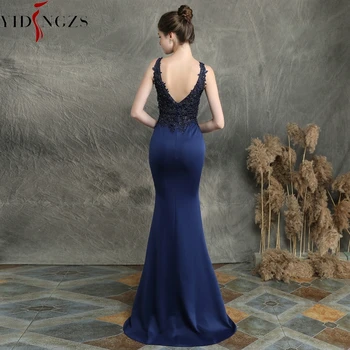 Select options This product has multiple variants. The options may be chosen on the product pageYIDINGZS Navy Blue V-neck Appliques Beaded Long Evening Dress See through Elegant Evening Party Dress YD16158