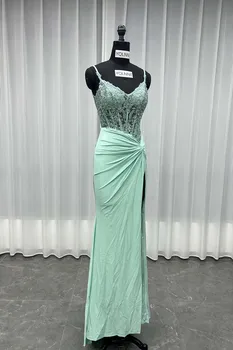 Select options This product has multiple variants. The options may be chosen on the product pageWedding Party Dress Mermaid High Slit Evening Dresses Shiny Appliques Spaghetti Straps Customized Vestidos De Noche