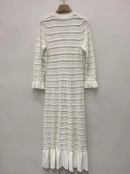 Select options This product has multiple variants. The options may be chosen on the product pageWhite Pearls Ruffle Knit Dress Women 2025 Spring Hollow Out V-Neck Flared Sleeve Single Breasted Mid-Calf Dresses 5250015