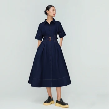 Select options This product has multiple variants. The options may be chosen on the product pageWomen’s Denim Dress Spring Summer Casual Belt Design Long Dresses Female 2025 Fashion Streetwear Sewing Thread Half Sleeve Dress