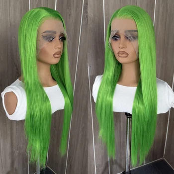 Select options This product has multiple variants. The options may be chosen on the product page13×4 Green Lace Front Wig Long Silky Straight Synthetic Hair Frontal Lace Wigs for Women Natural Hairline Daily Wear Cosplay Wig