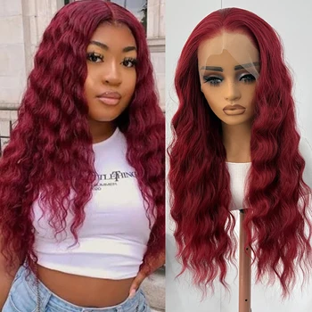 36.99$0 out of 5Burgundy Lace Wig Long Deep Wave Synthetic Lace Front Wigs for Women 13X4 Glueless Natural Hairline Daily Use Cosplay Party