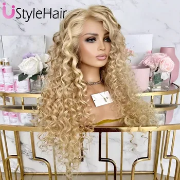 Blonde Curly Wig Lace Front Long Deep Curly Synthetic Lace Wig Heat Resistant Hair Daily Use Natural Hairline Wigs for Women