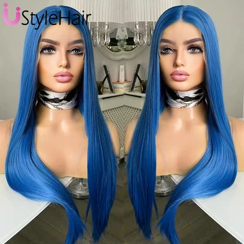 Blue Lace Front Wig Synthetic Long Natural Wave Wig Natural Looking Silky Straight Daily Use Wig Heat Resistant Cosplay Wigs