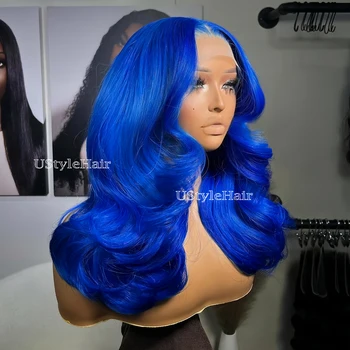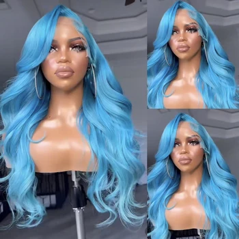 Blue Lace Front Wig Long Body Wave Synthetic Hair Wigs 13×4 Glueless Daily Waer Heat Resistant Fiber Hair Daily Wear Cosplay
