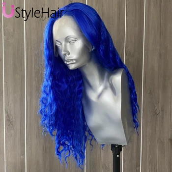 Blue Wig Long Curly Lace Front Wig Synthetic Loose Curly Natural Looking Daily Use Wig Heat Resistant Daily Wear Cosplay Wigs