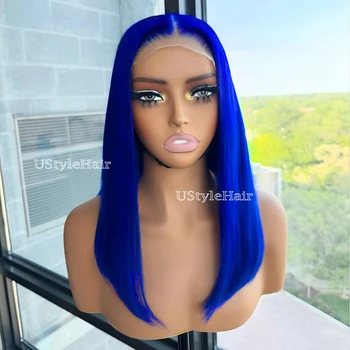 Blue Bob Wig Short Lace Front Synthetic Wigs for Women 12-16 Inches Natural Looking Silky Straight Daily Use Cosplay Party