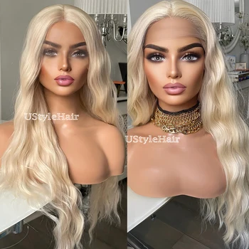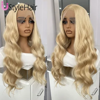 Blonde Wig Lace Front Long Body Wave Synthetic Wigs 13×4 Frontal Lace Natural Hairline Daily Cosplay Wigs Glueless Women’s Wig