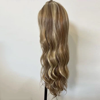 Blonde Highlighted Wig 13×4 Lace Front Wig Long Body Wave Glueless Synthetic Hair Brown Blond Natural Hairline Women Wig Daily