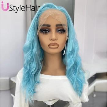 Blue Lace Front Wig 13X4 Glueless Synthetic Hair Body Wave Wig 14-26 Inch Natural Looking Daily Use Cosplay Party Wigs for Women