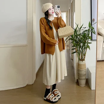 Select options This product has multiple variants. The options may be chosen on the product page2025 Autumn Maternity Breastfeeding Dress Solid Color Long Sleeve O-neck Fashion Pregnant Woman Nursing Corduroy Dress Loose