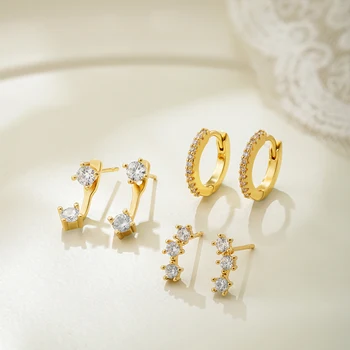 Select options This product has multiple variants. The options may be chosen on the product page3 Pair/set Stackable Ear Piercing Dainty Cubic Zircon Cartilage Huggie Hoop Earrings for Women Fashion Jewelry Pendientes