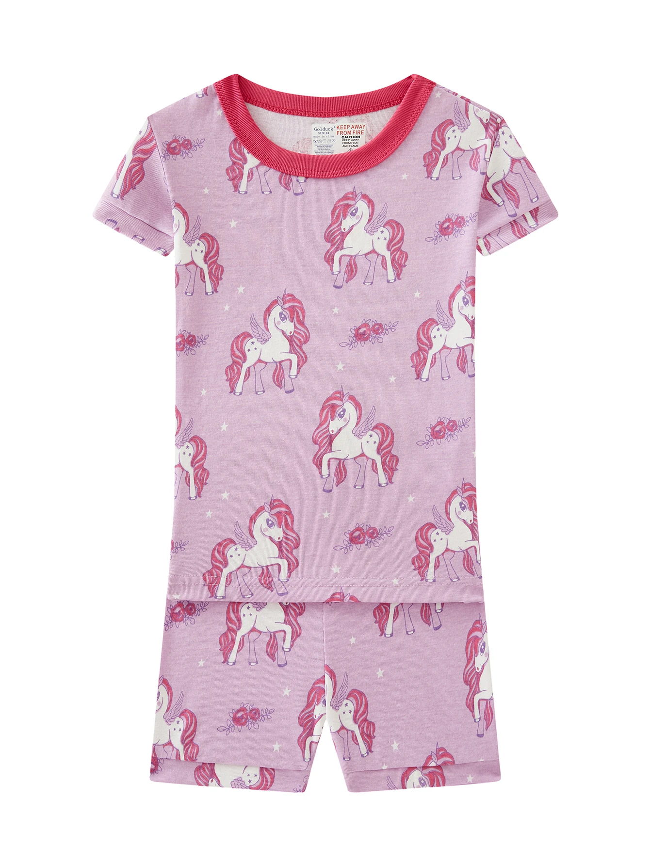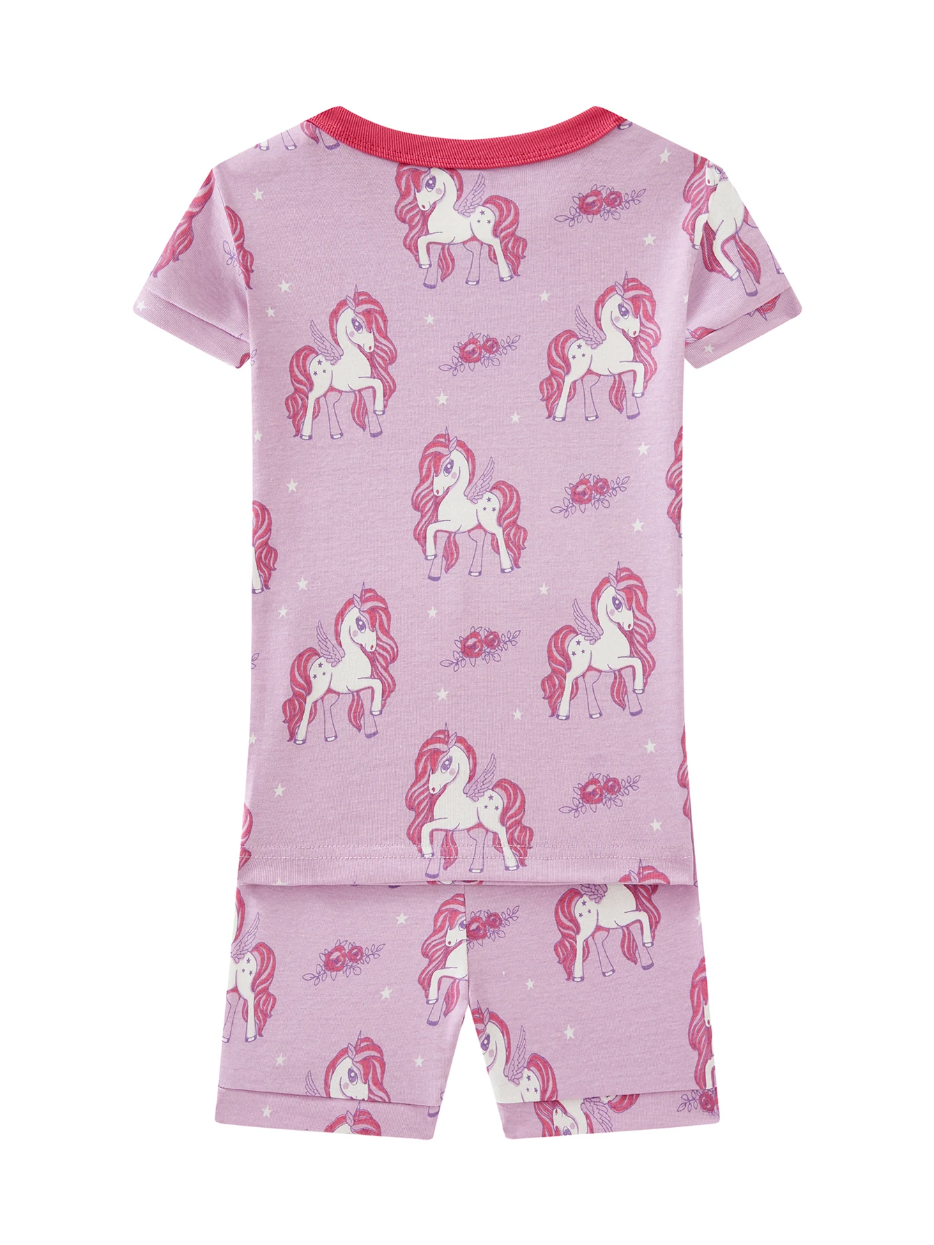 【2025 New】Cute Pink Unicorn Sleep Set for Kids | Elastic Waist Cotton Shorts & Tee | Non-Fade Childrens Pajamas For Girls