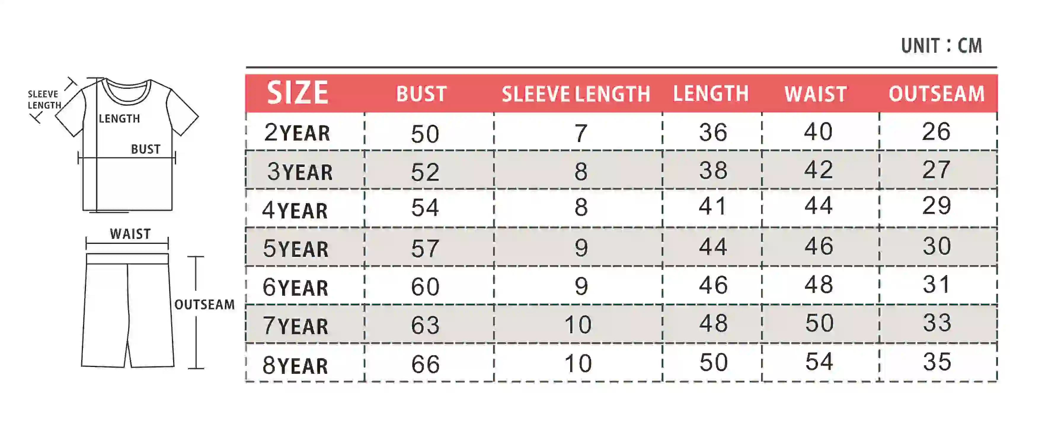 | size_info | {"sizeInfoList":[{"length":{"cm":"50","inch":"19.69"},"size":"2Y","vid":-1},{"length":{"cm":"52","inch":"20.47"},"size":"3Y","vid":-2},{"length":{"cm":"54","inch":"21.26"},"size":"4Y","vid":-3},{"length":{"cm":"57","inch":"22.44"},"size":"5Y","vid":-4},{"length":{"cm":"60","inch":"23.62"},"size":"6Y","vid":-5},{"length":{"cm":"63","inch":"24.80"},"size":"7Y","vid":-6},{"length":{"cm":"66","inch":"25.98"},"size":"8Y","vid":-7}]} |