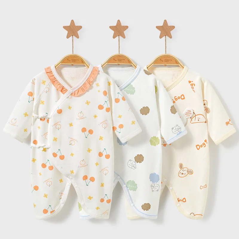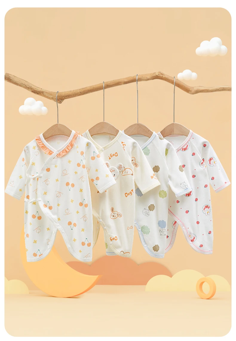 100% cotton baby romper – newborn belly protector romper cartoon animal prints, breathable and skin-friendly, seamless sewing