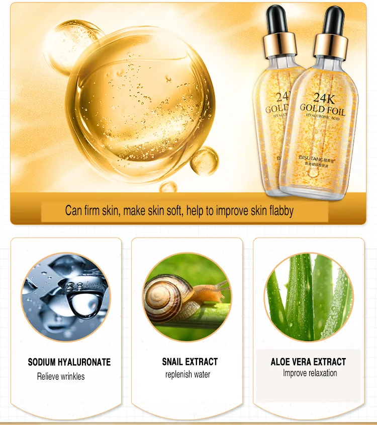 100ML 24K Gold Tense Moisture Essence Pure Hyaluronic Acid Serum Anti-wrinkle Gold Nicotinamide Liquid Snail Skin Care Essence