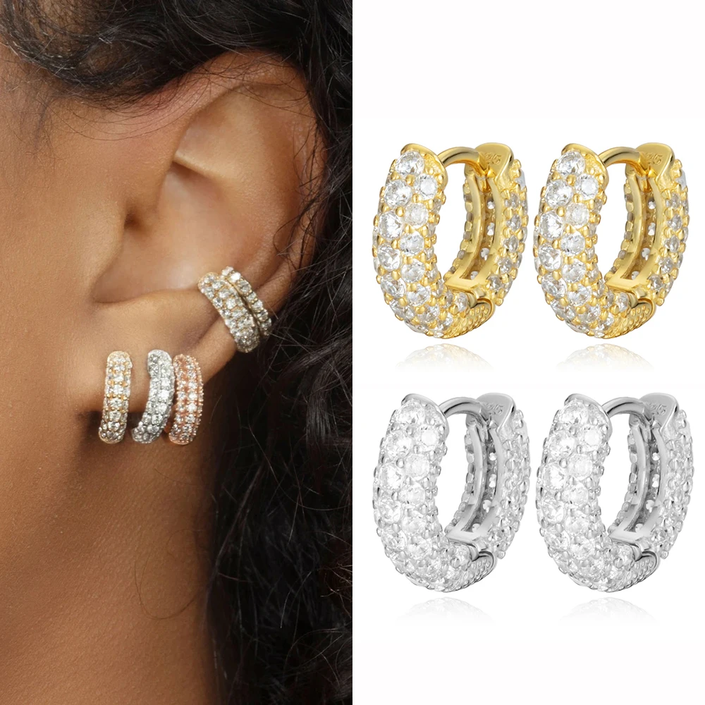 10mm Gold Plated CZ Zircon Small Hoop Earrings for Women Silver Color Round Circle Cartilage Ear Buckle Huggie Female Jewelry