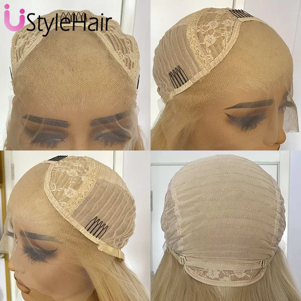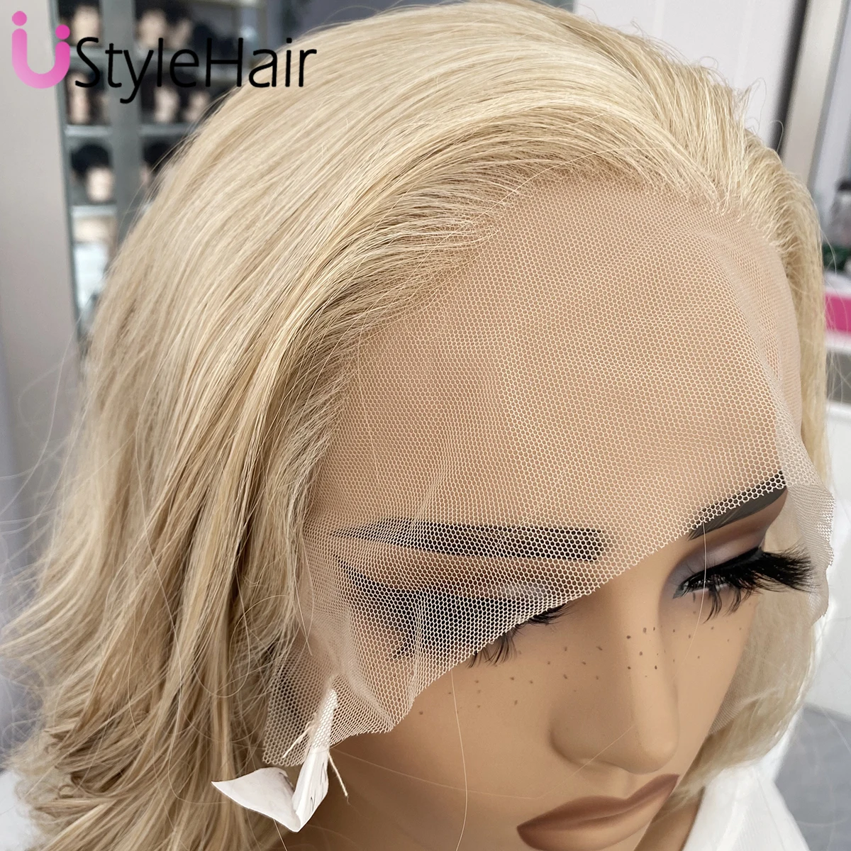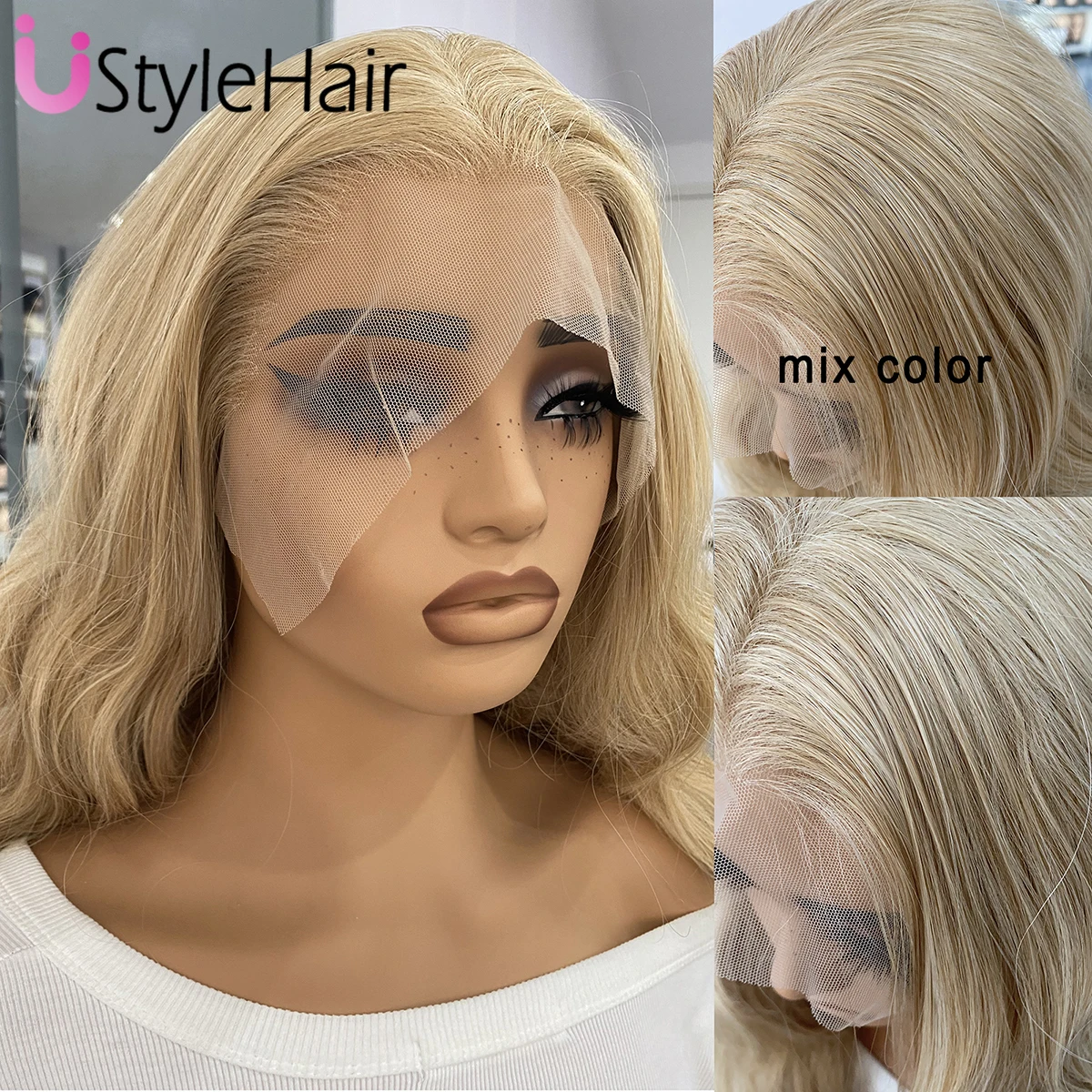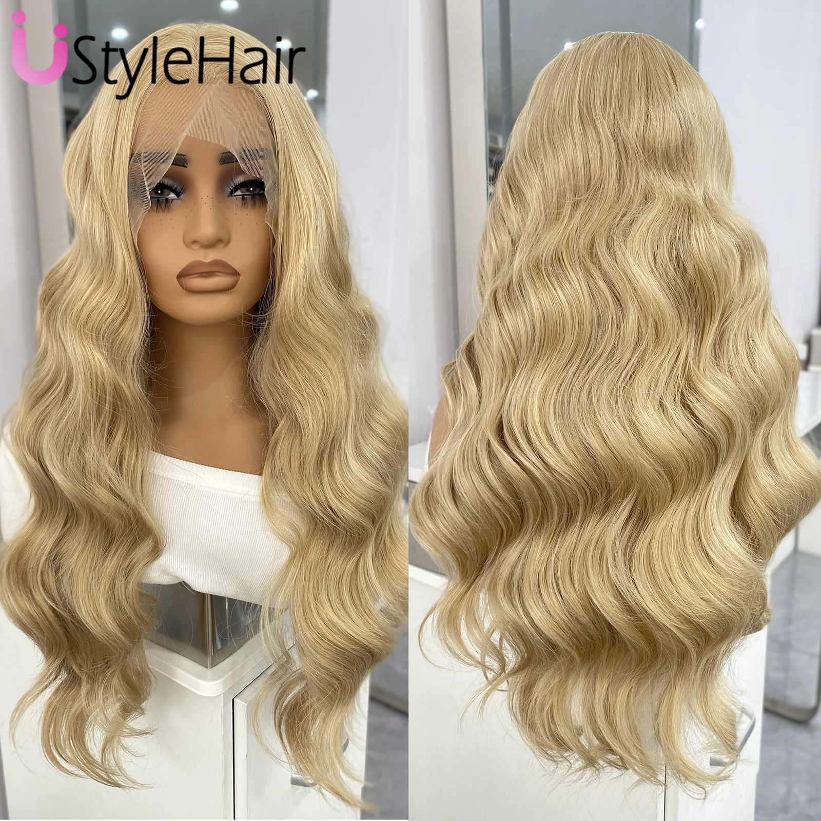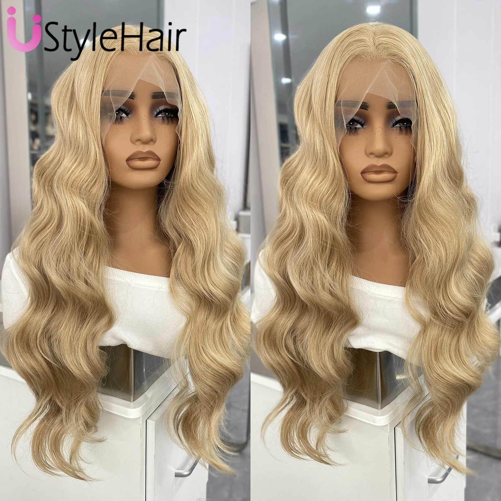 13×4 Blonde Wig Lace Front Synthetic Hair Long Body Wave Hair Mix Color Natural Looking Wig Heat Resistant Fiber Daily Wear