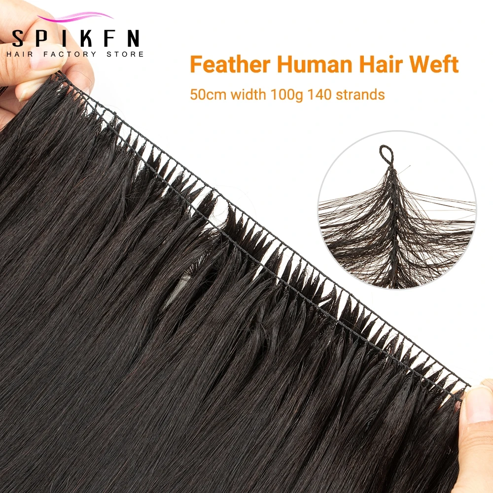 16-22 inches Feather Weft Human Hair Extensions 100g Sewing On Invisible Custom Bundles 50cm Weft Width 140 Strands