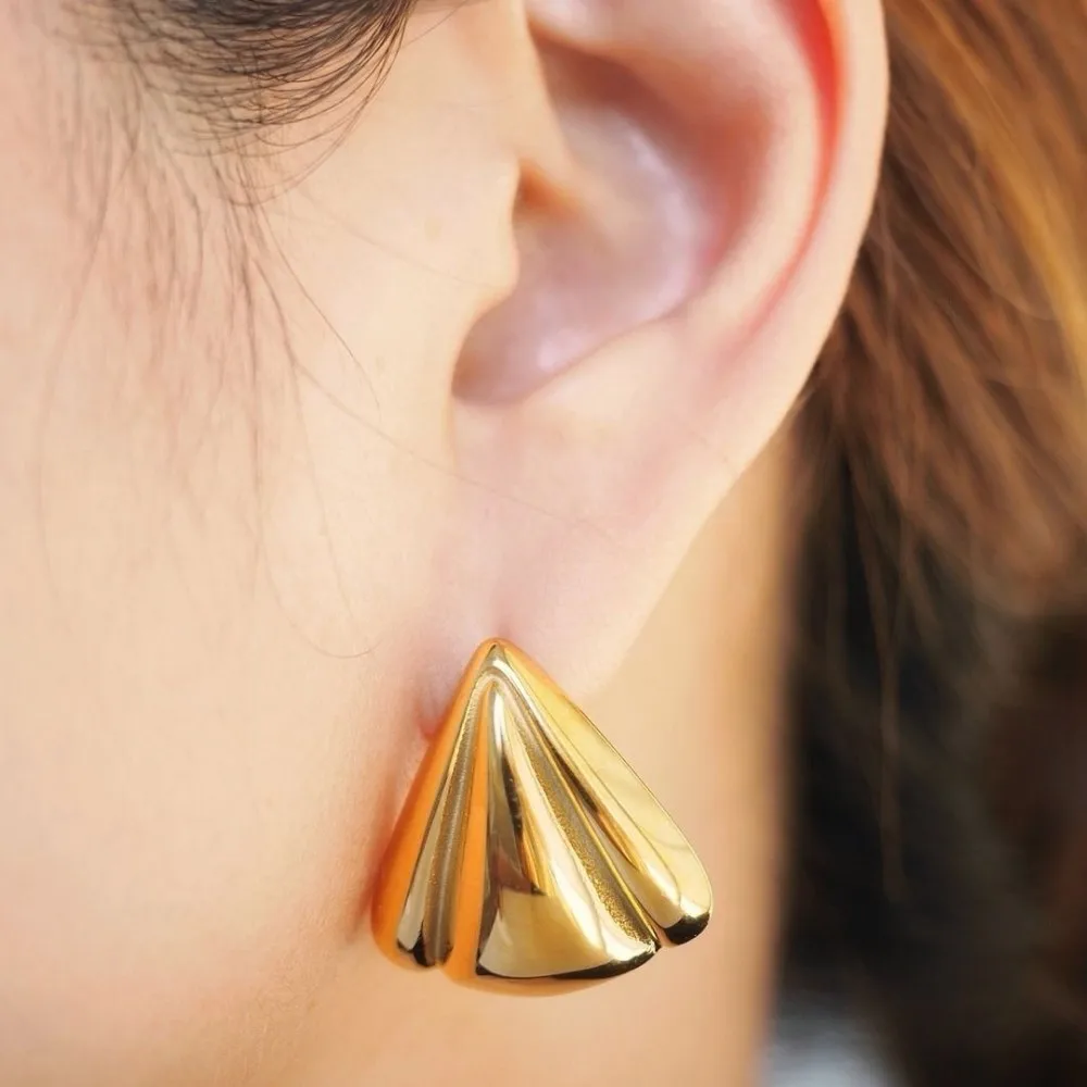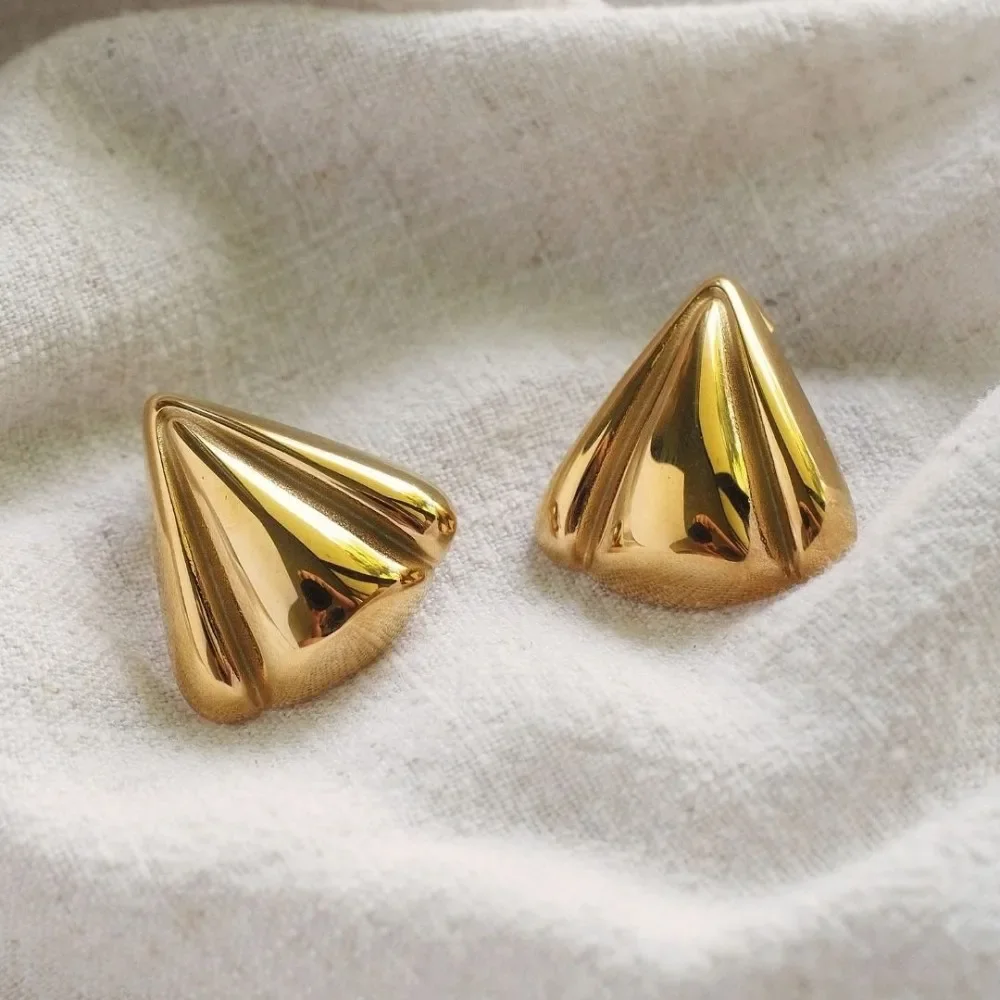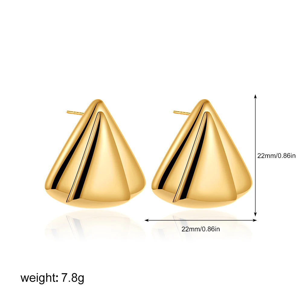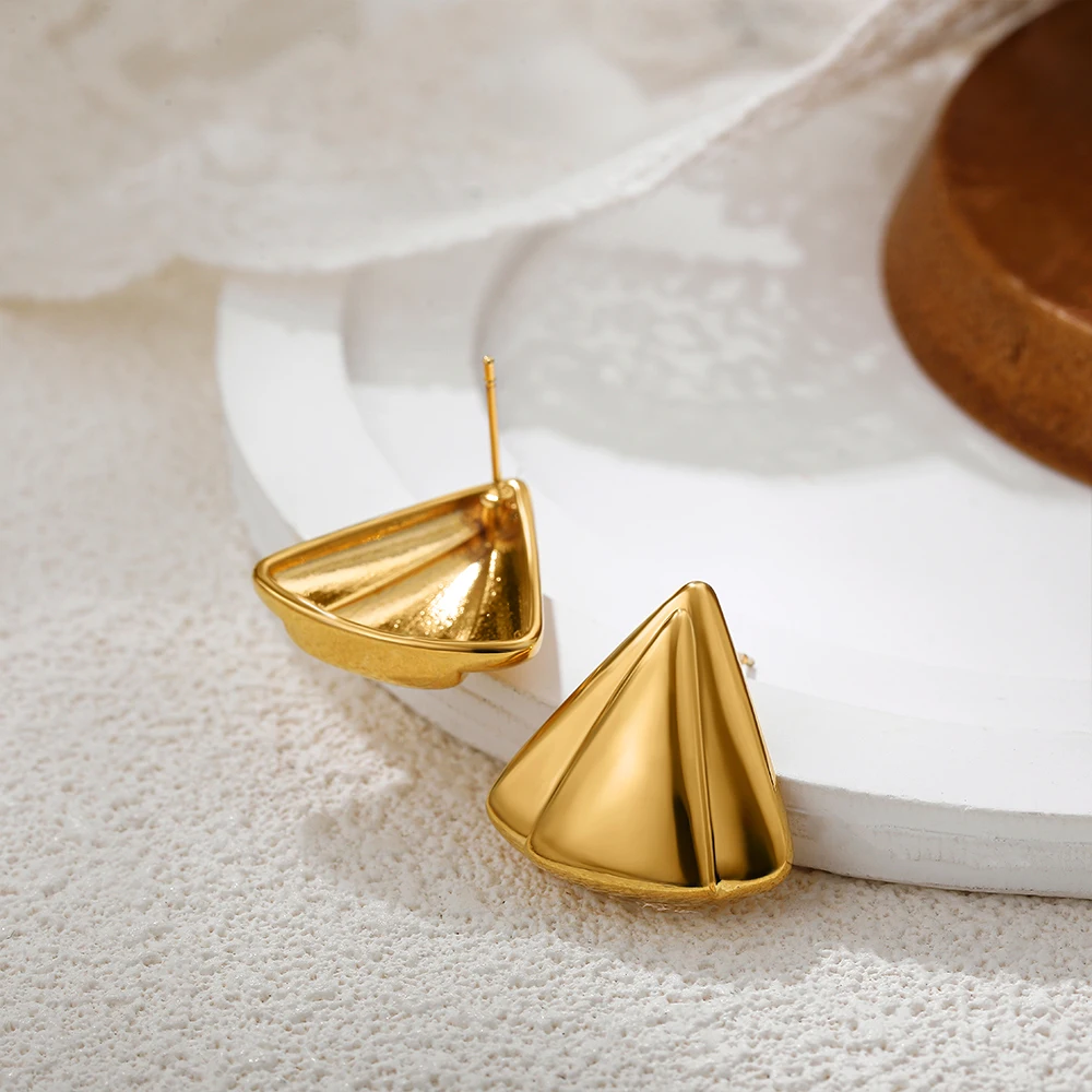 18K Gold Plated Texture Chunky Triangle Stud Earrings for Women Rust Proof Waterproof 2025 New Geometric Stainless Steel Jewelry
