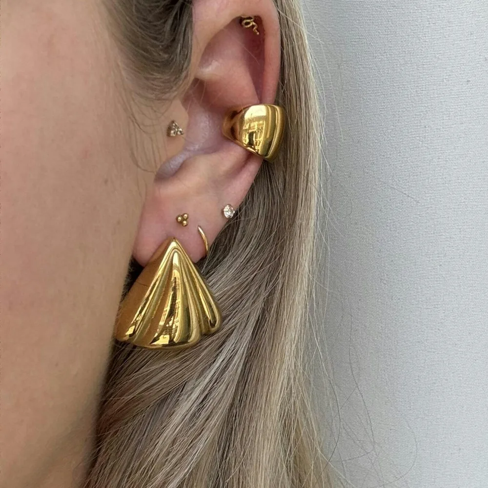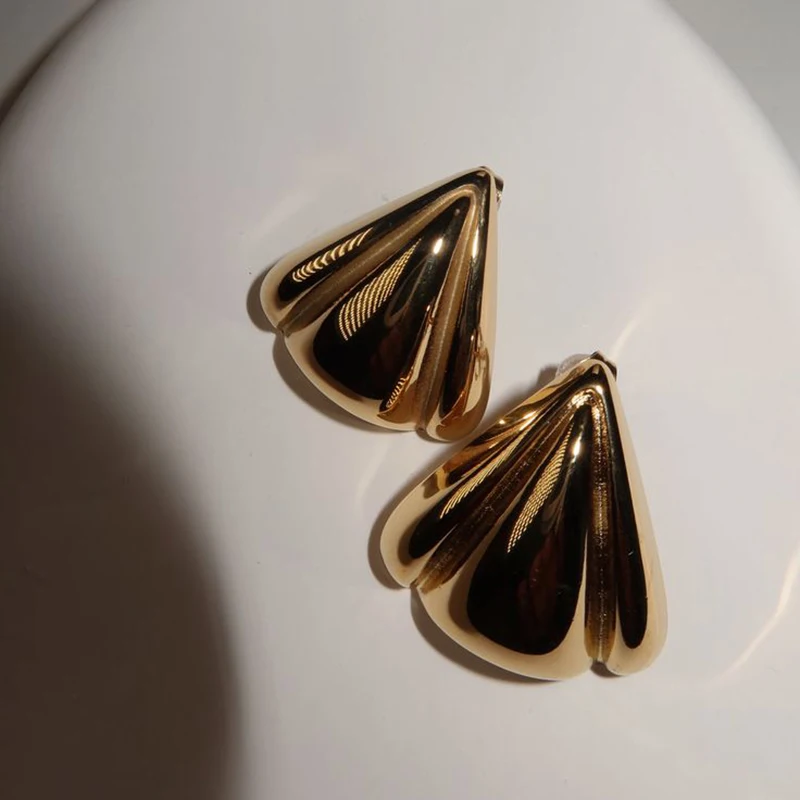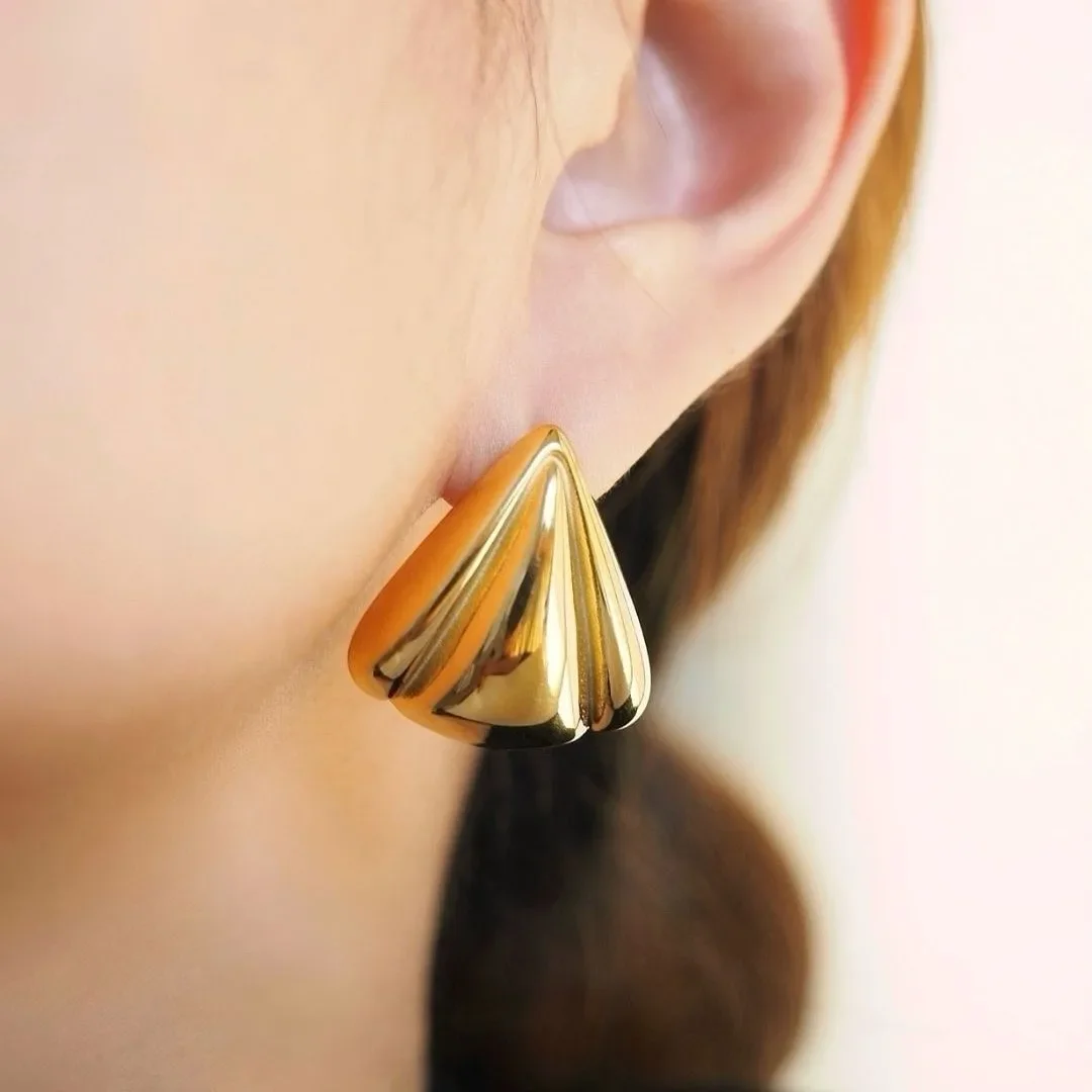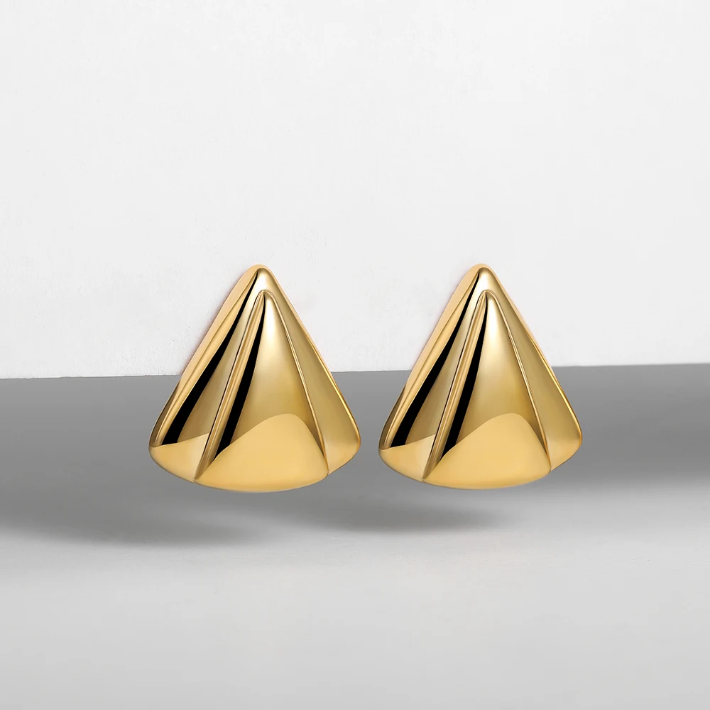 18K Gold Plated Texture Chunky Triangle Stud Earrings for Women Rust Proof Waterproof 2025 New Geometric Stainless Steel Jewelry