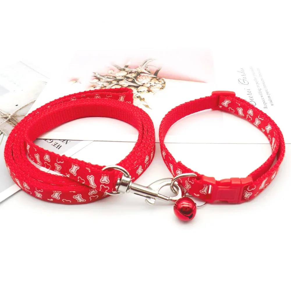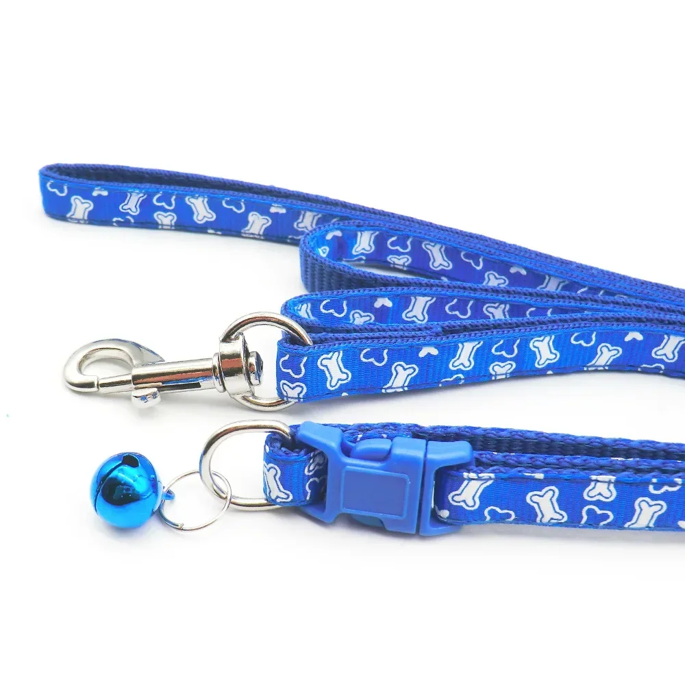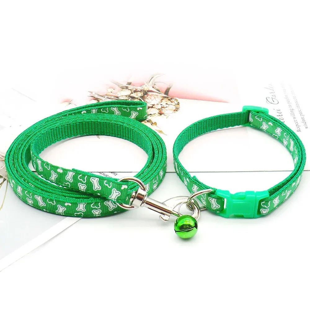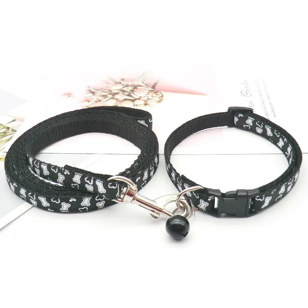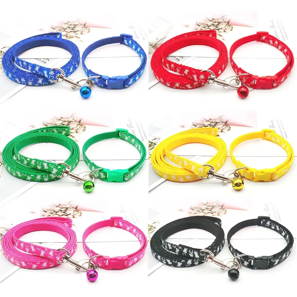1pc Colorful Cute Collar with Bell Adjustable Buckle Cat Collar Leash Pet Supplies Bone Print Kitten Collar Out Walking