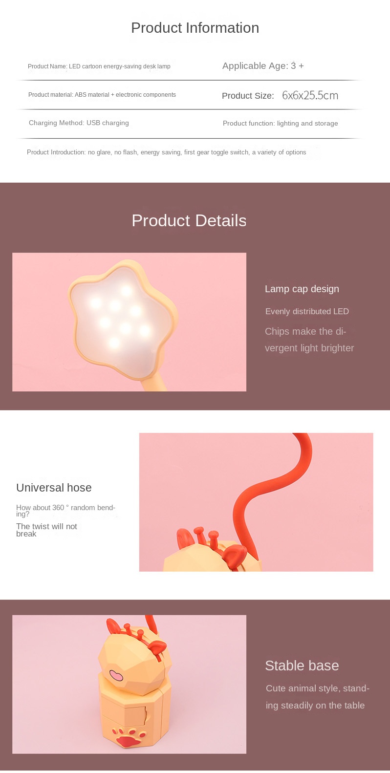 1pcs Cute Animal LED Desk Lamp Foldable Dimmable Table Light Temperature Adjustable Learning Portable Lamp