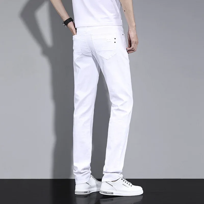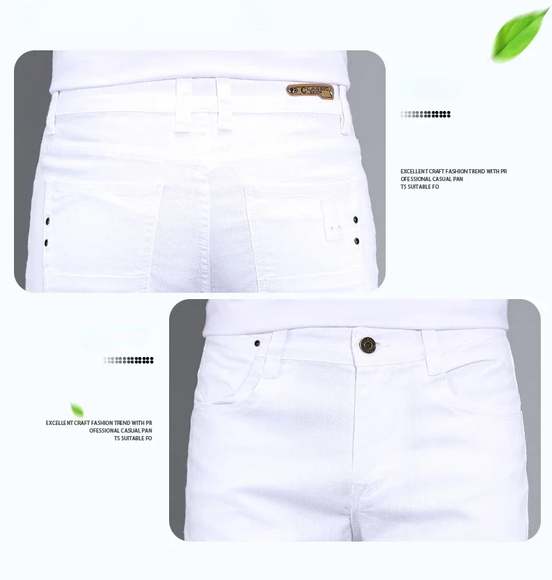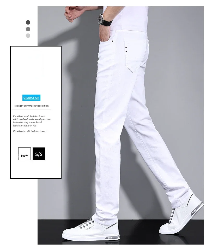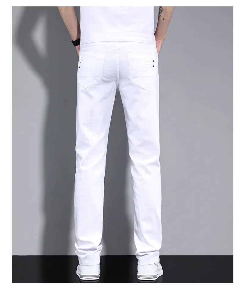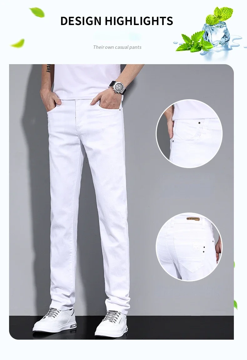 2024 New Men’s Pure White Slim Casual Pants Brand Clothing Stretch Straight Gentleman’s Suit Long Trousers Classic Style Male