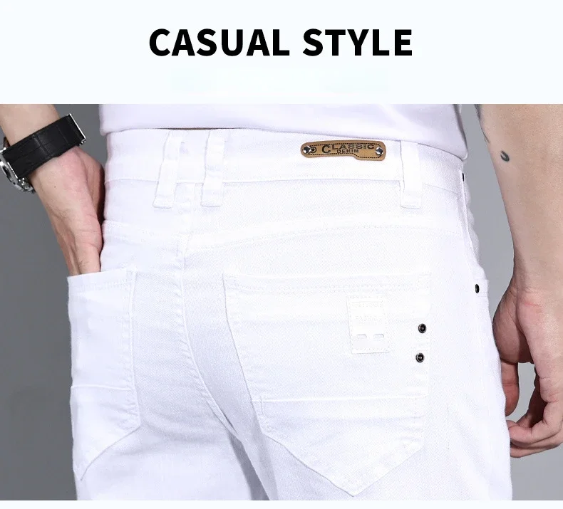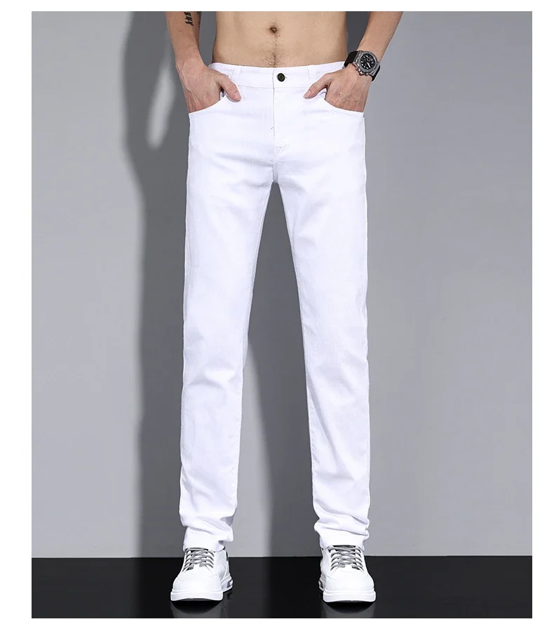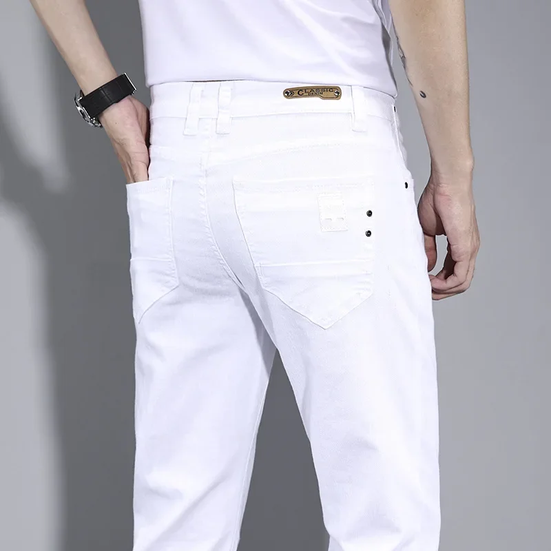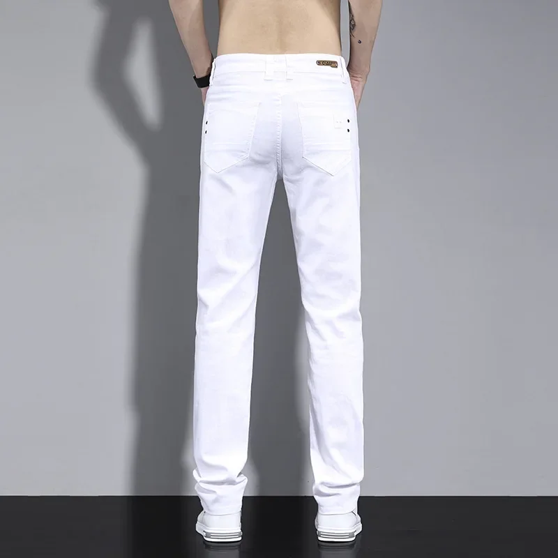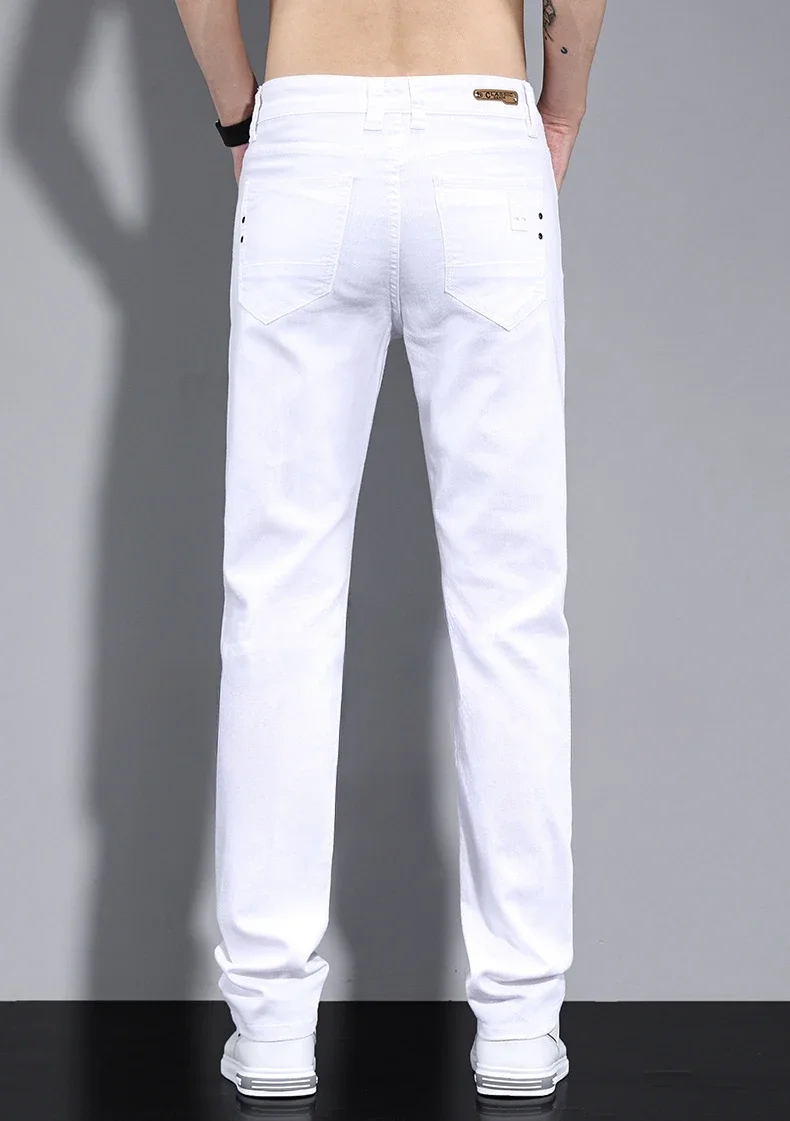 2024 New Men’s Pure White Slim Casual Pants Brand Clothing Stretch Straight Gentleman’s Suit Long Trousers Classic Style Male