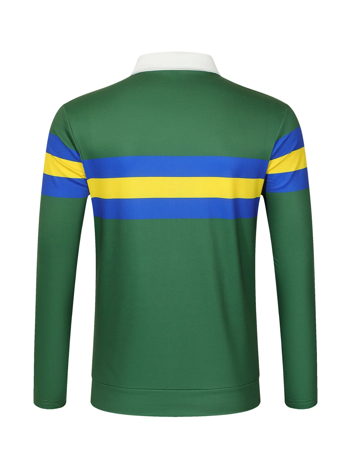 2025 autumn long sleeve new T-shirt men’s printed color matching lapel men’s casual POLO shirt top