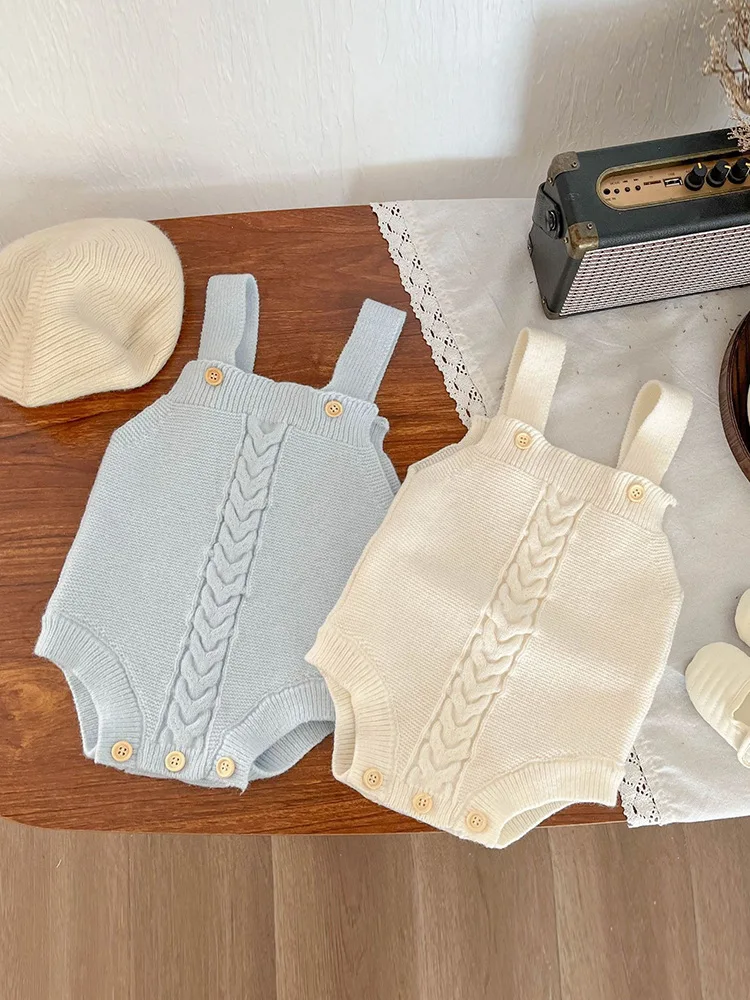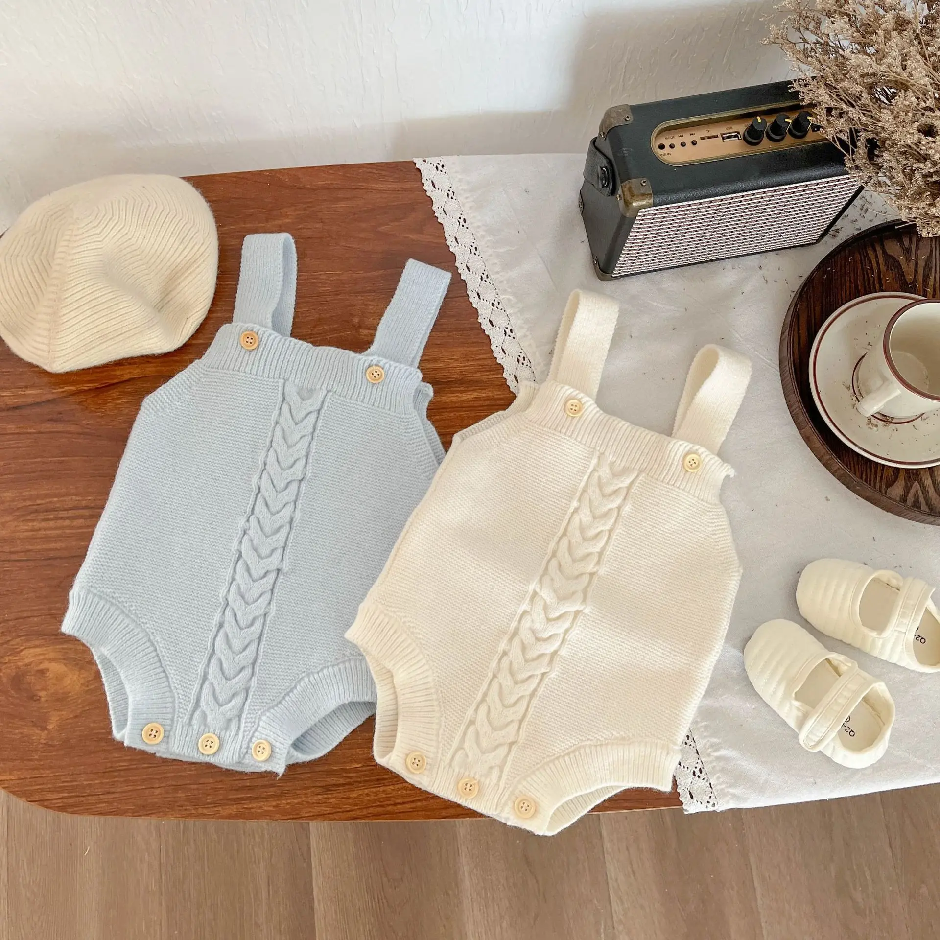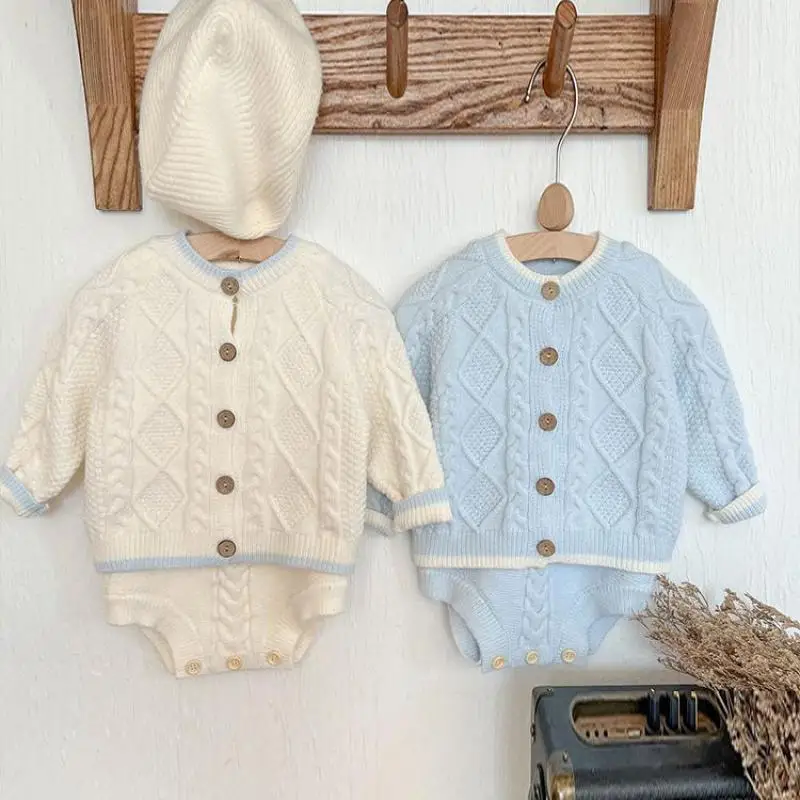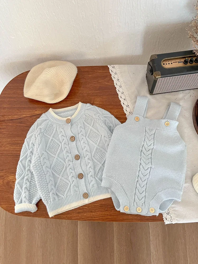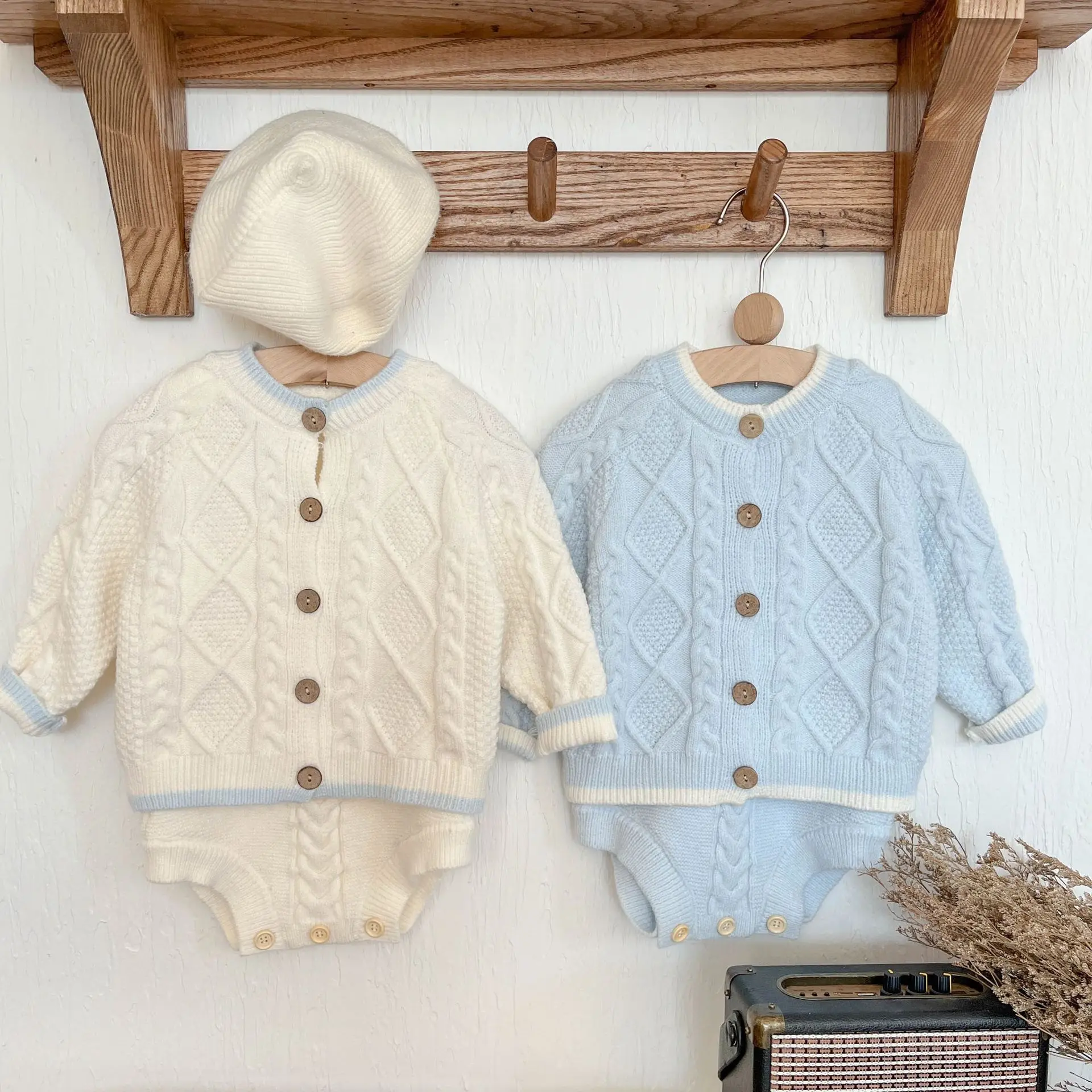 2025 Autumn New Baby Girl Knitted Sweater Cardigan + Sleeveless Strap Bodysuit 2pcs Suit Infant Set Toddler Girls Cotton Outfits
