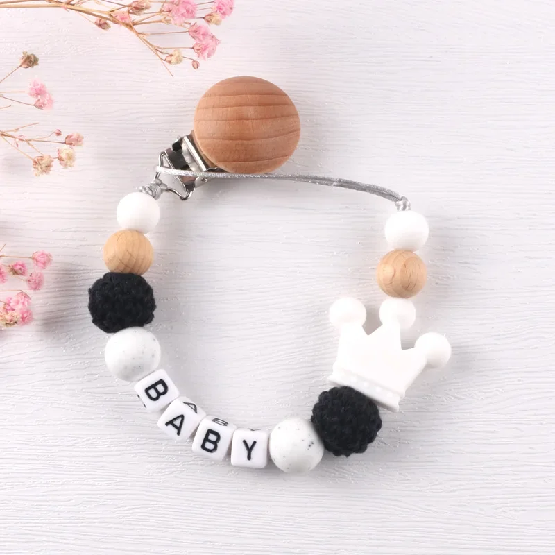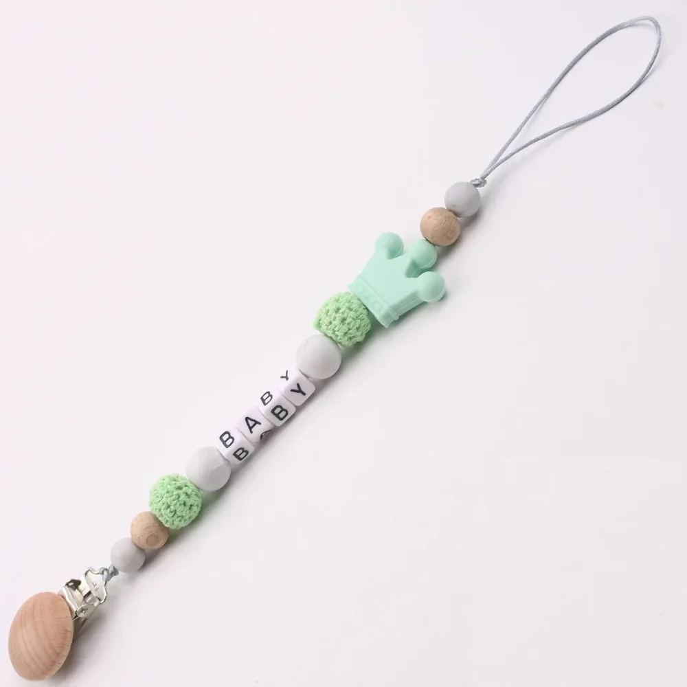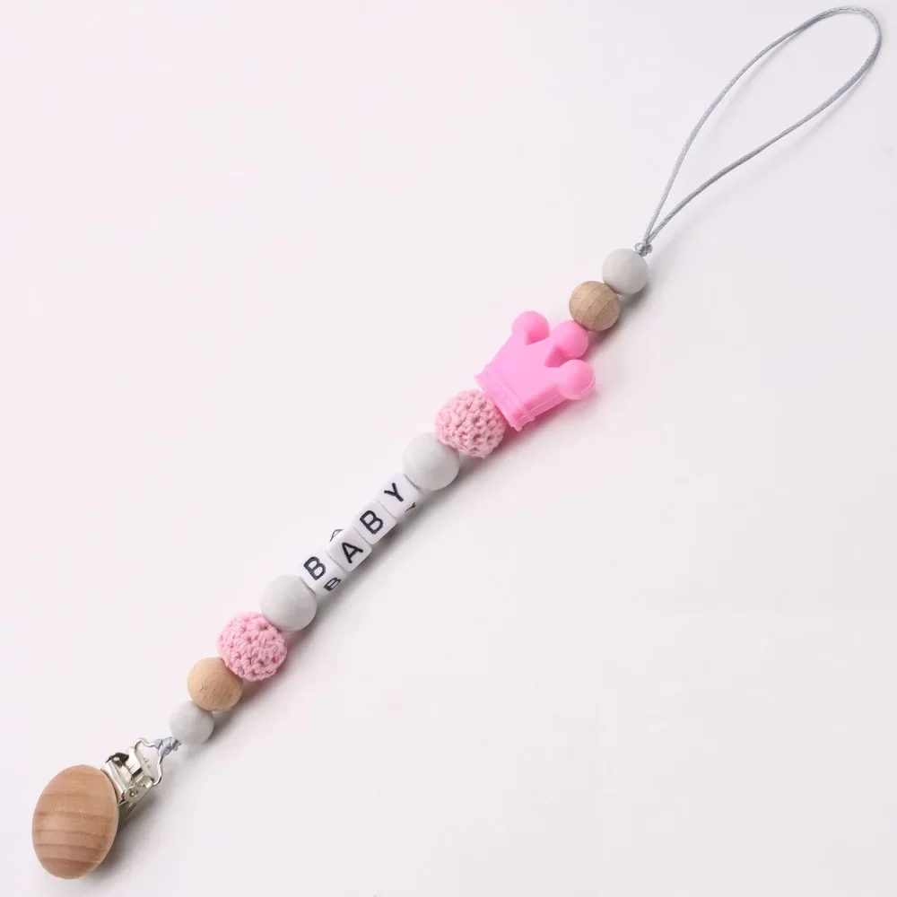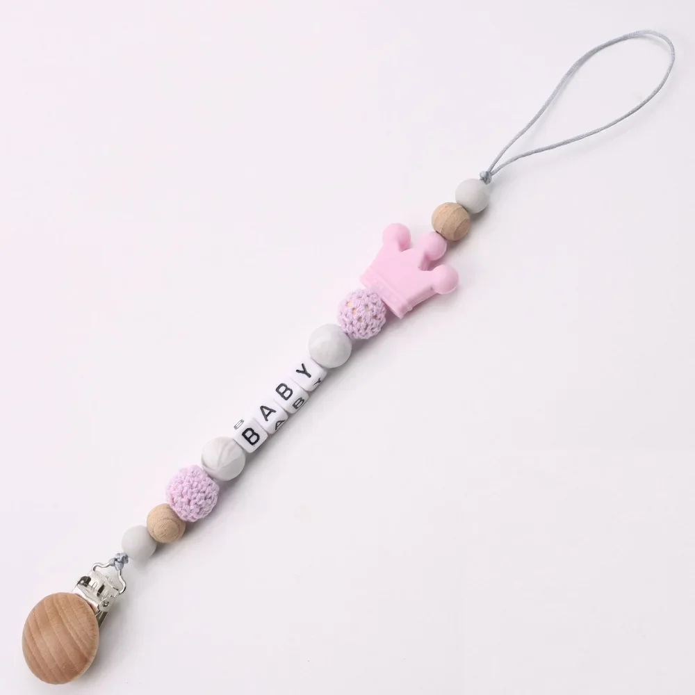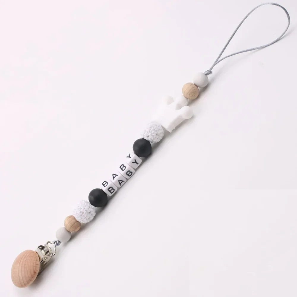 Baby Comfort Pacifier Chain Children’s Beech Wood Silicone Non Bisphenol Pacifier Chain Kids Toy Pendant Pacifier Accessories