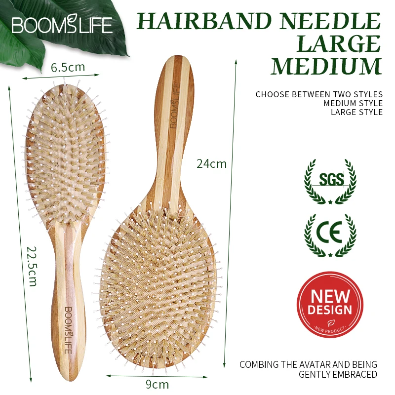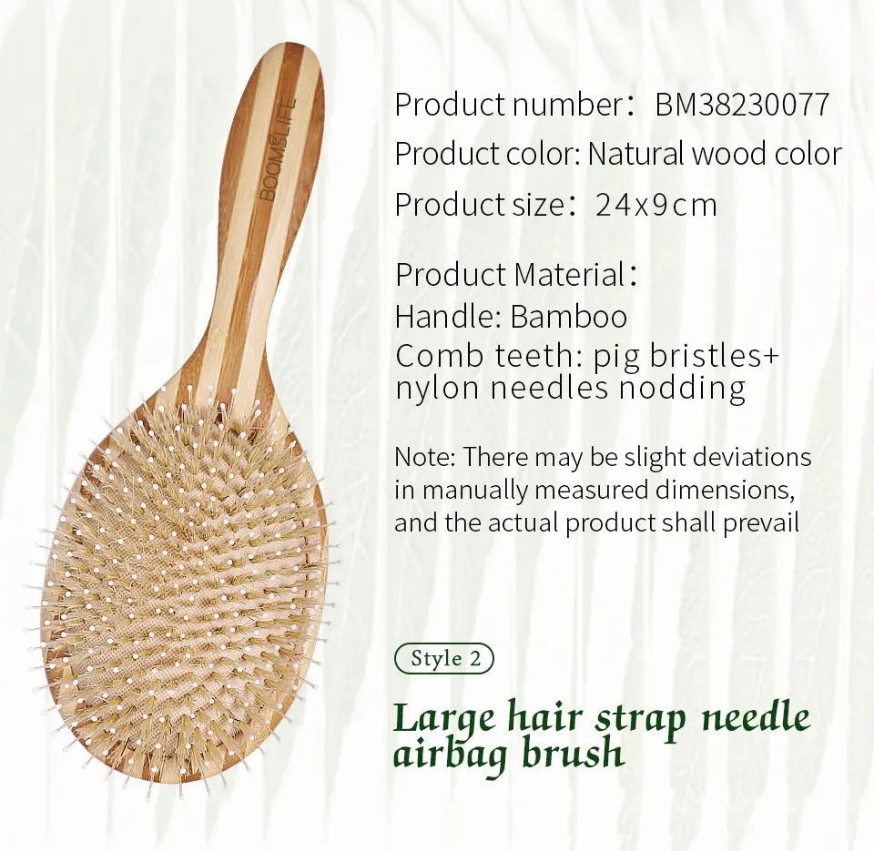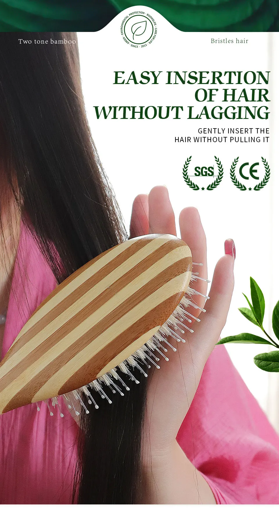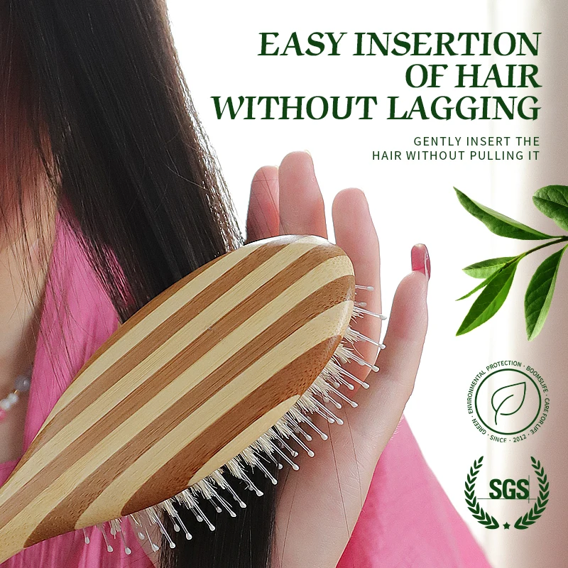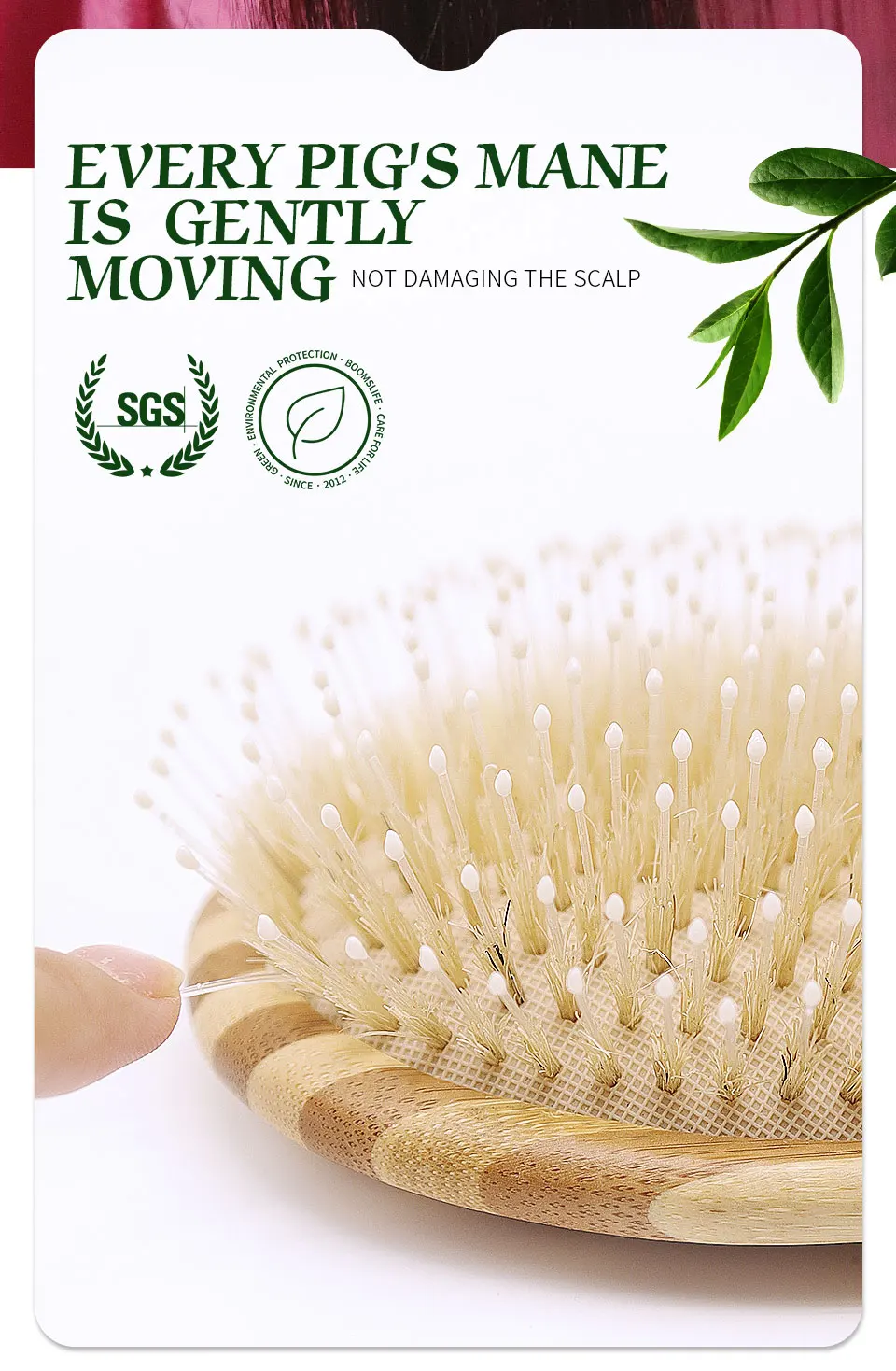 BOOMSLIFE Custom White Boar Bristle Bamboo Hair Brush Mix Nylon Women Massage Scalp Wood Comb for Hair Beauty Barber Accessories
