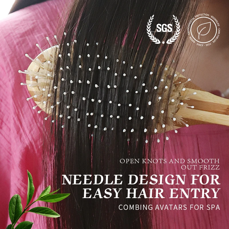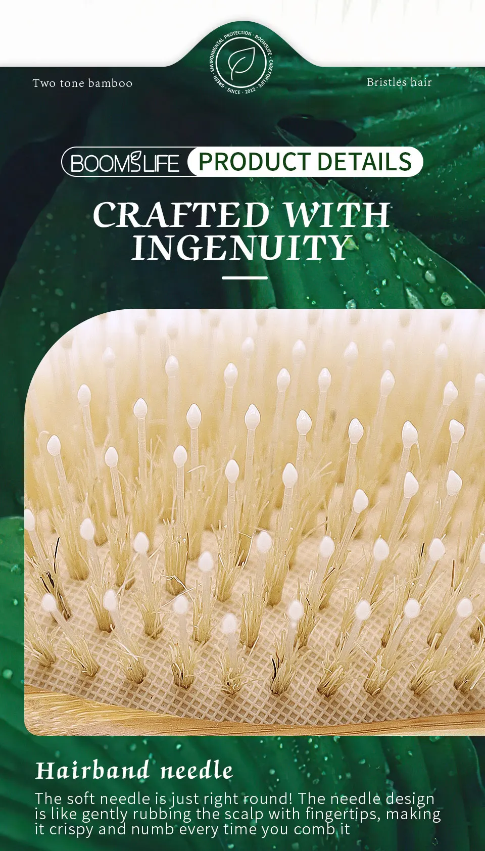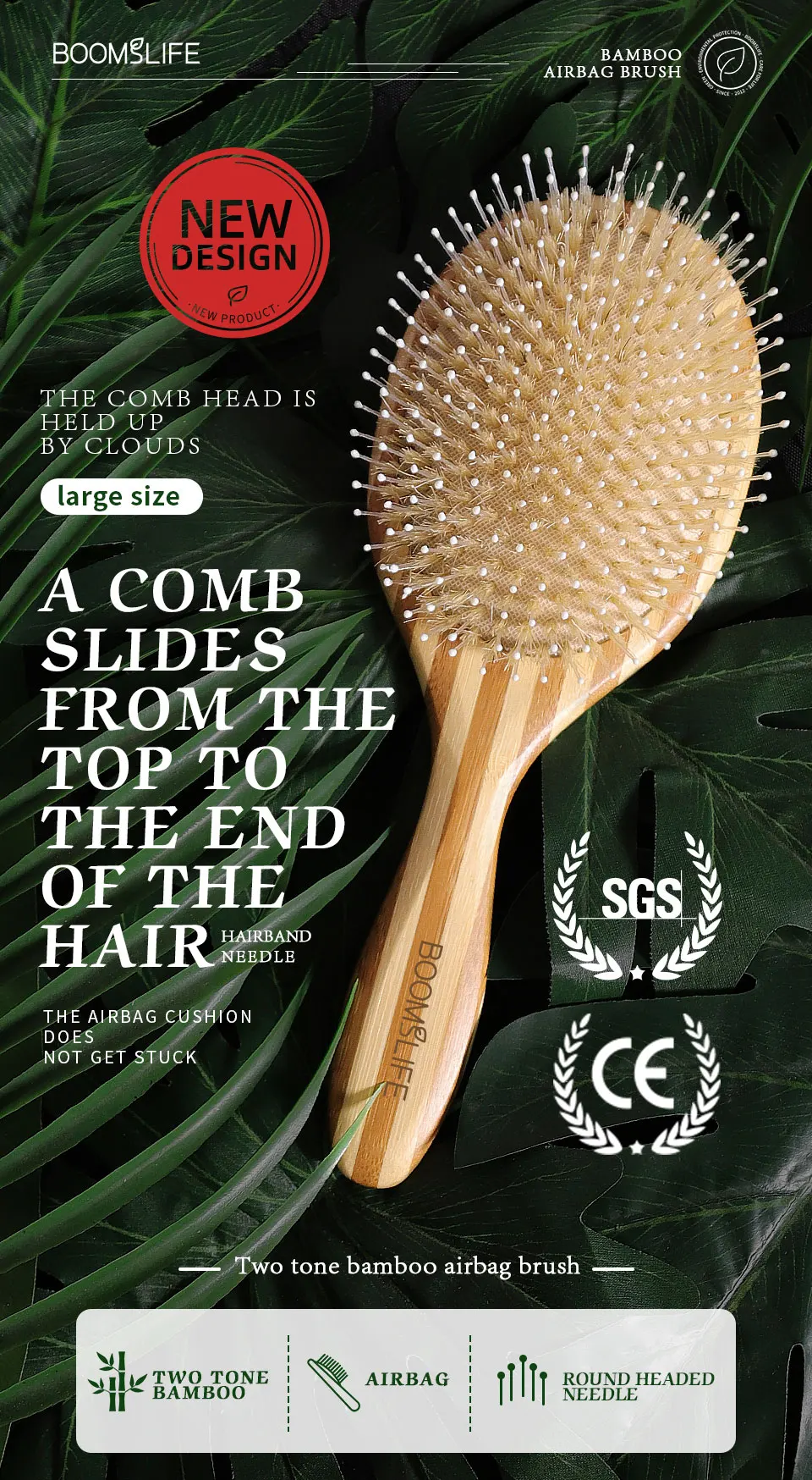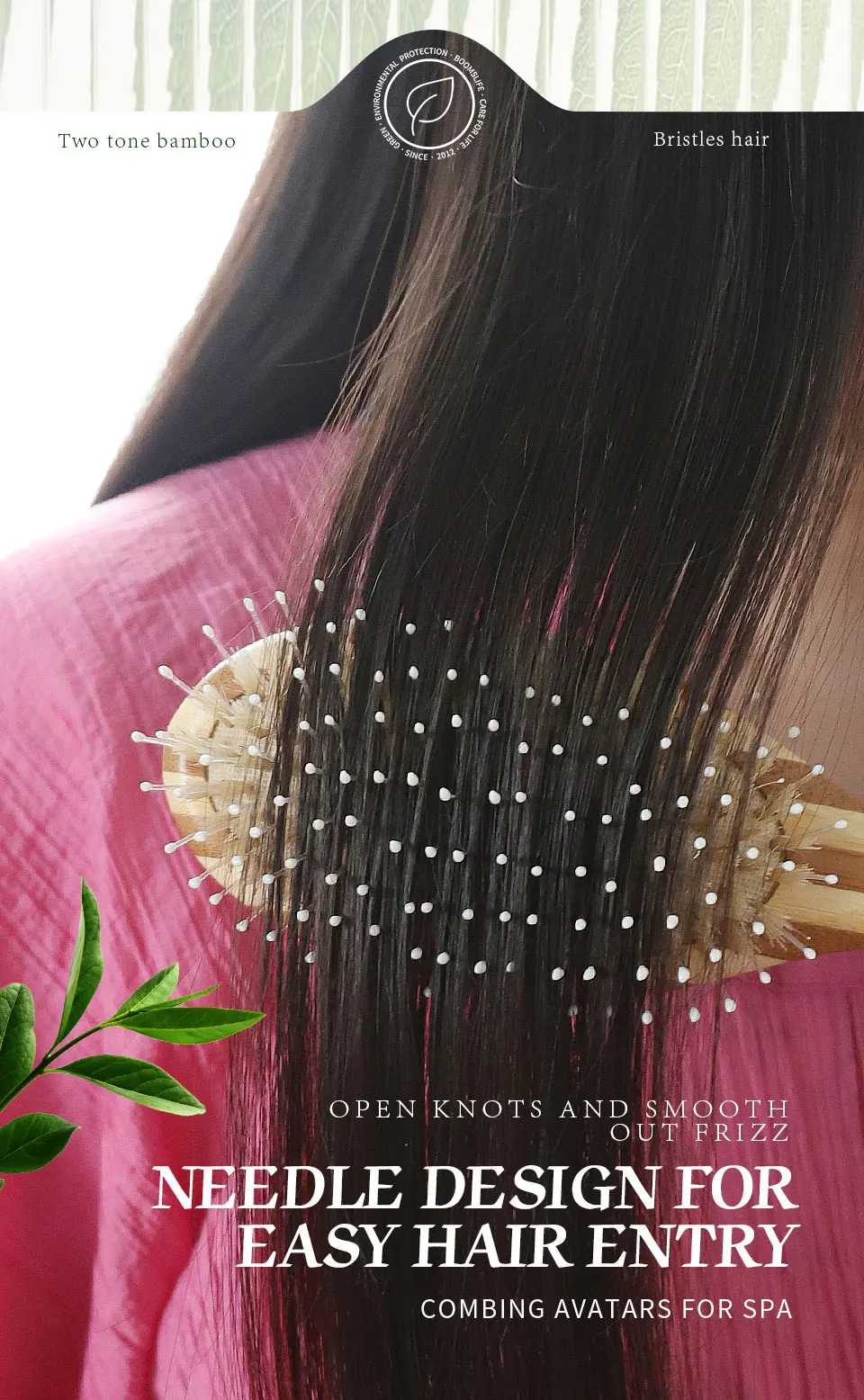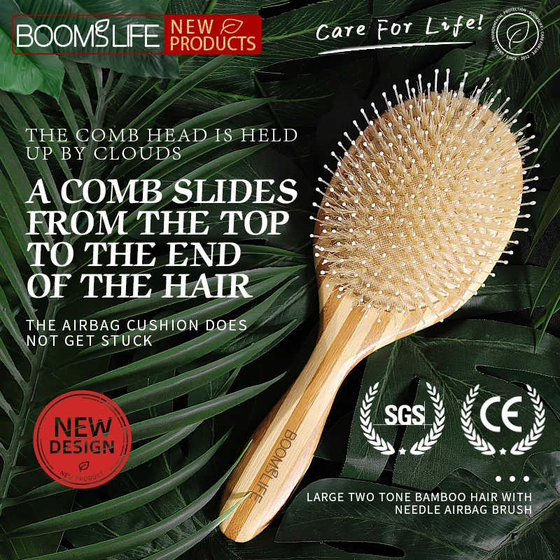 BOOMSLIFE Custom White Boar Bristle Bamboo Hair Brush Mix Nylon Women Massage Scalp Wood Comb for Hair Beauty Barber Accessories