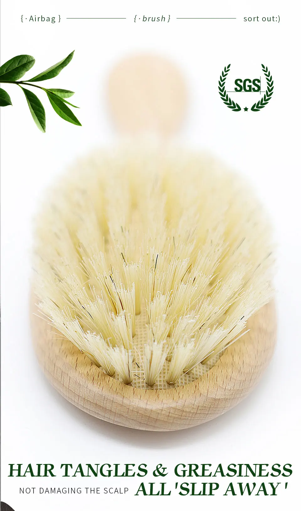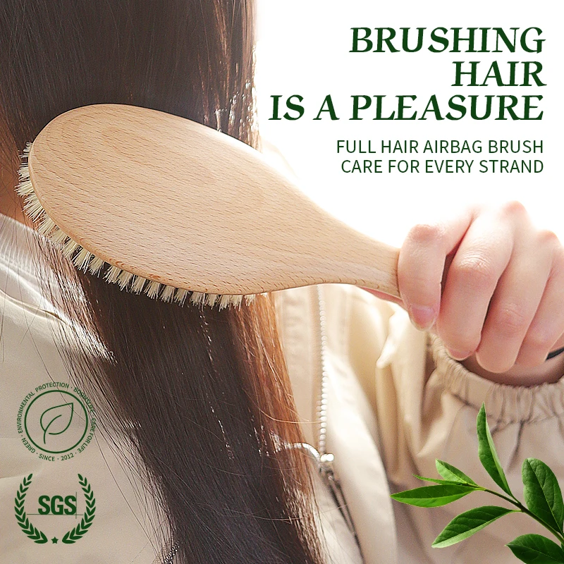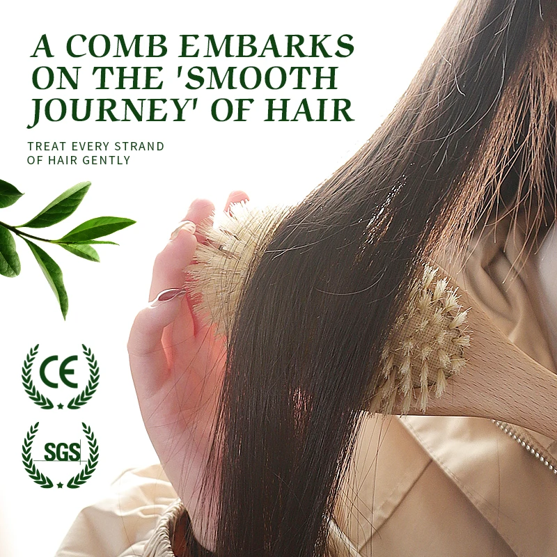 BOOMSLIFE Soft Boar Bristle Hair Brush Women Custom Scalp Massage Wood Comb for Curly Thick Long Hair Detangler Hair Care Tool