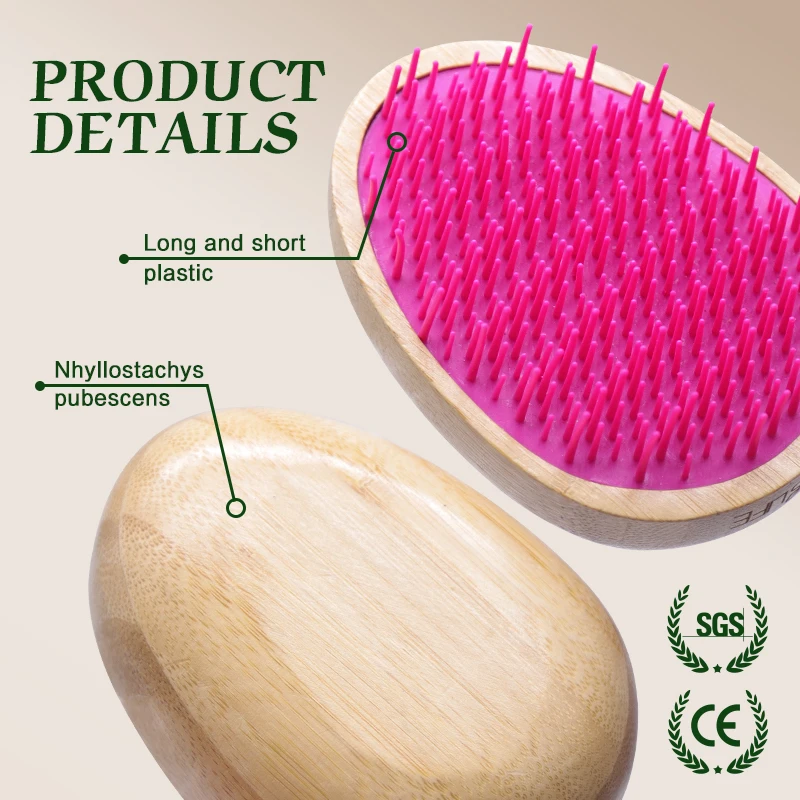 Custom Hair Brush For Women Egg Shape Anti Static Styling Bamboo Comb for Hair Scalp Massage Bamboo Hairbrush Portable Travel