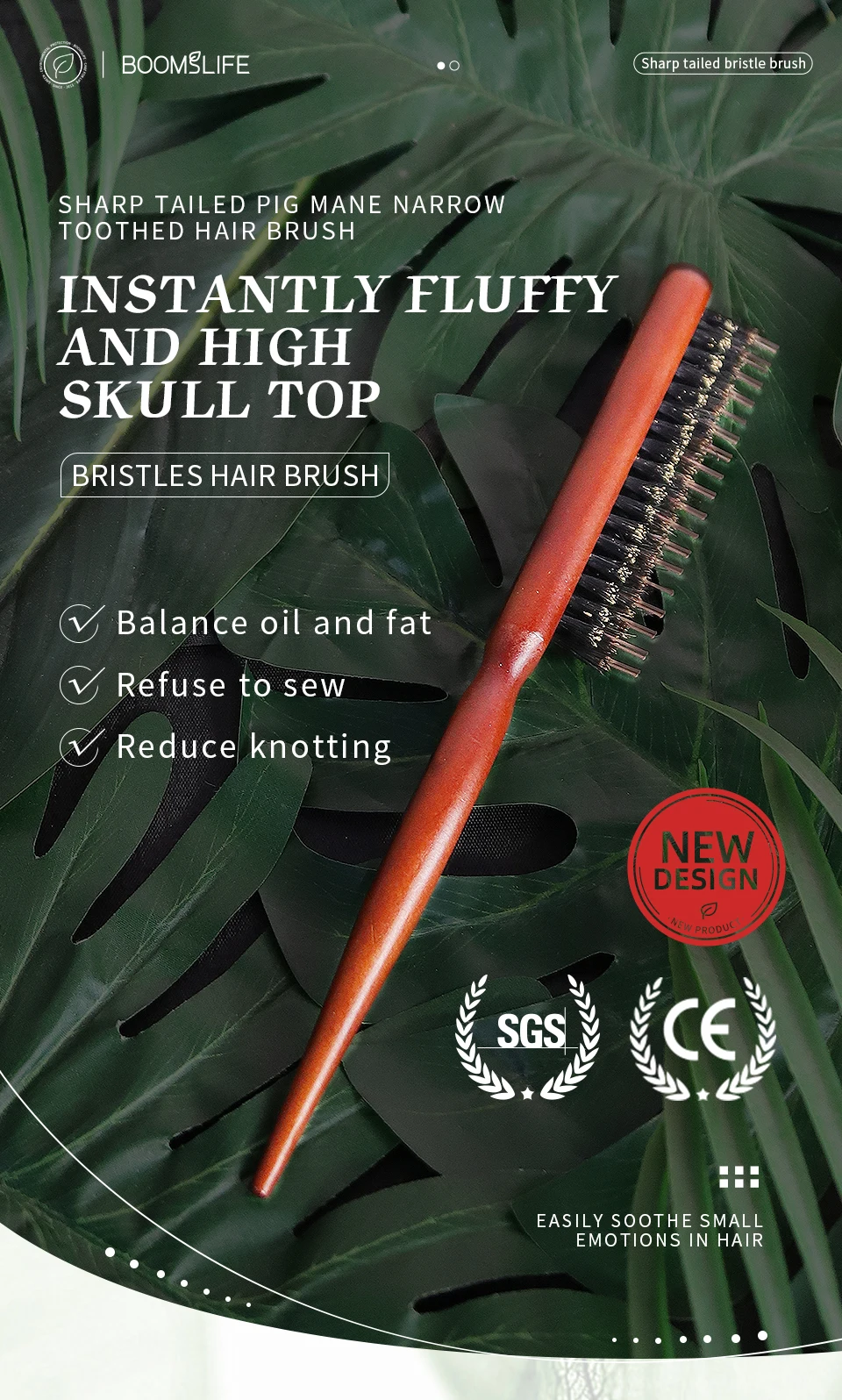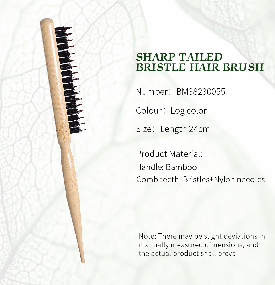 Custom Wood Fluffy Hair Comb Three Rows Boar Bristle Hair Brush Salon Teasing Slim Line Comb Extension Hairdressing Styling Tool