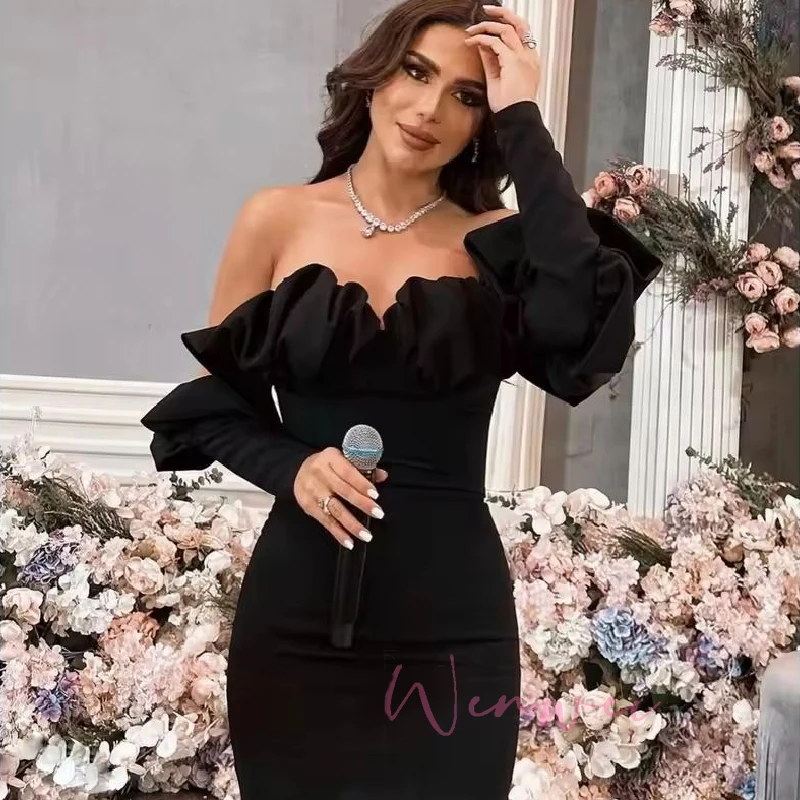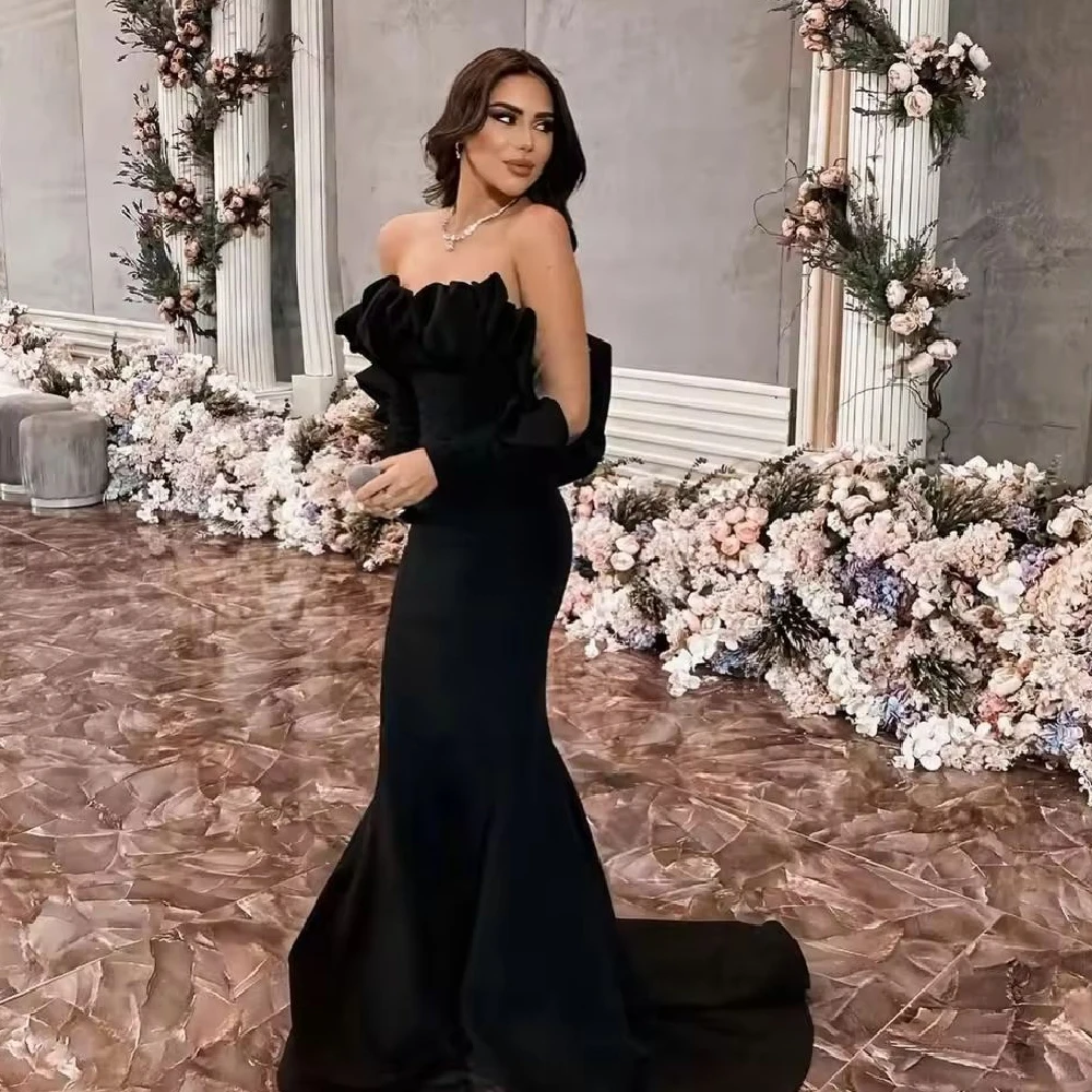 Customized Black Party Dresses Backless One Shoulder Sleeves robes de soirée Strapless Mermaid Floor-Length Prom Dress